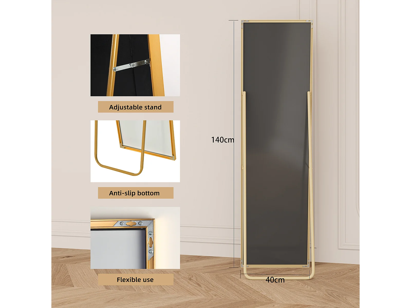 Miroir sur Pied Rectangle avec Cadre en Métal Miroir sur Pied HD Grand pour Salon, Chambre et Dressing Miroir Doré 140x40cm