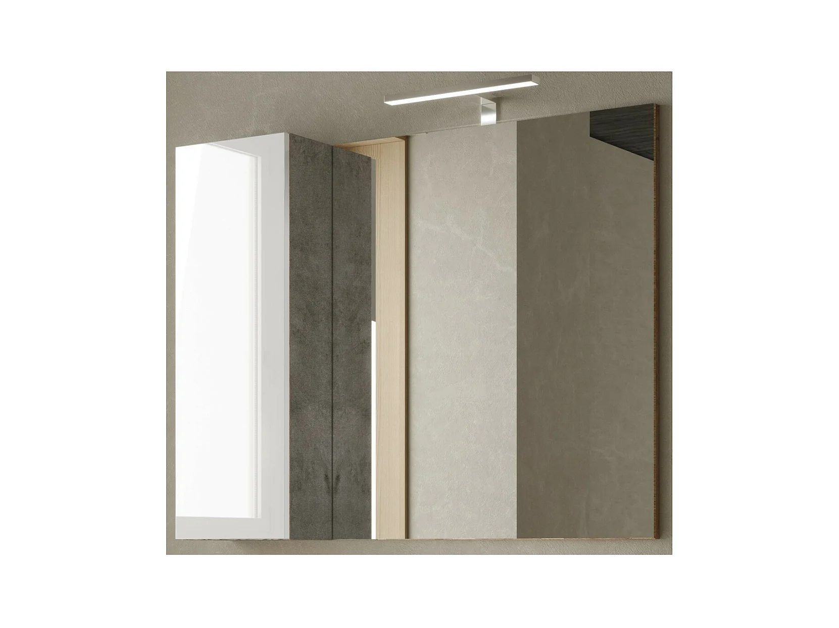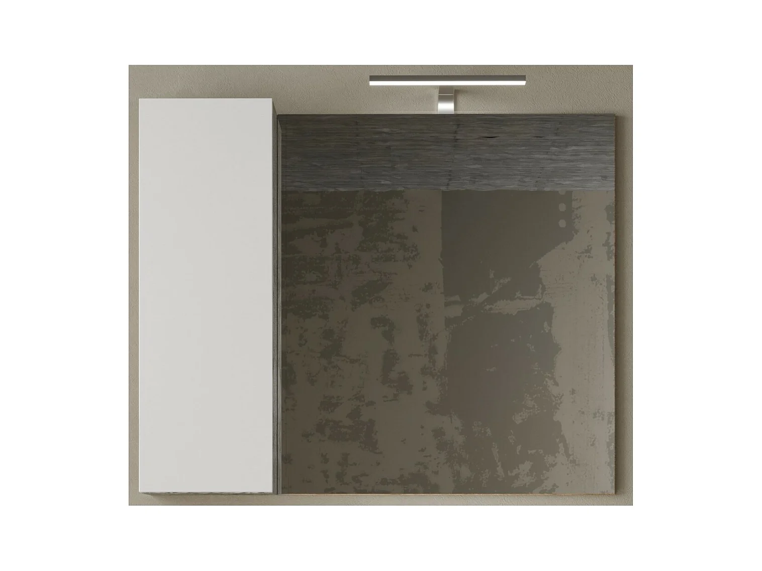 Miroir design avec rangement, 92x75 cm, collection BURA, coloris blanc brillant et béton