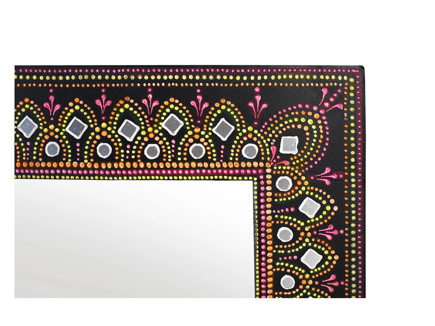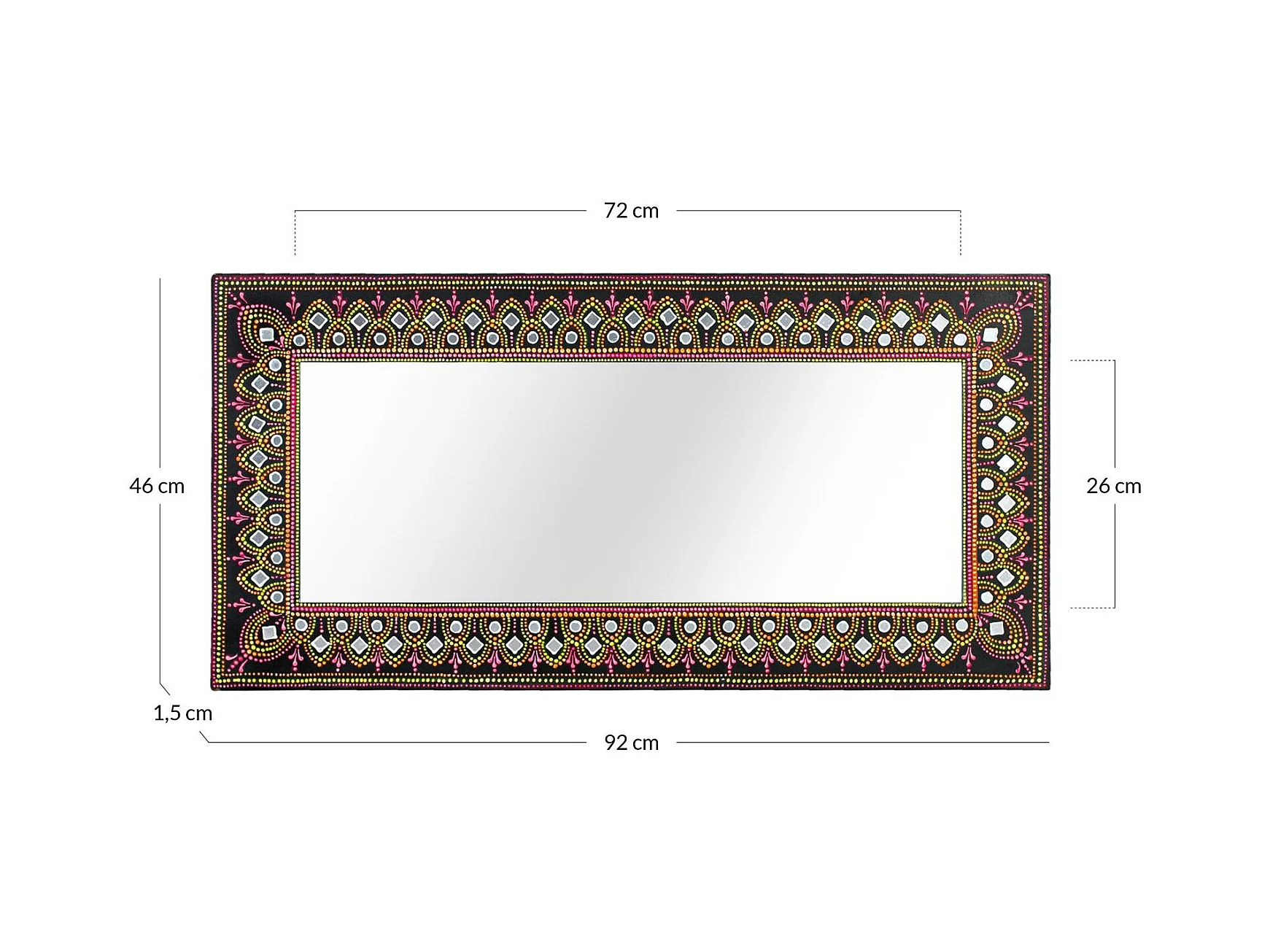 Miroir en bois de manguier avec mosaïques artisanales multicolores