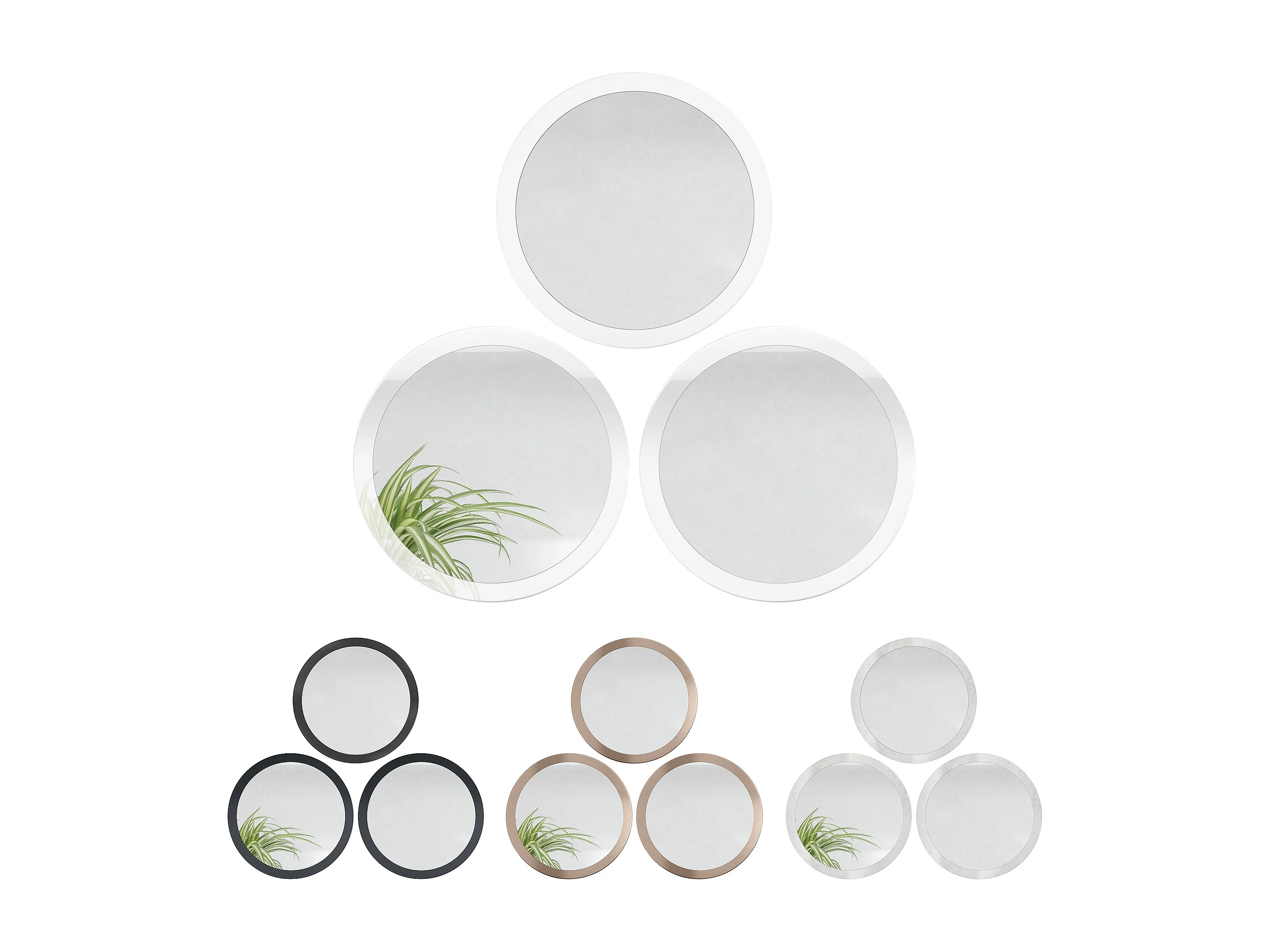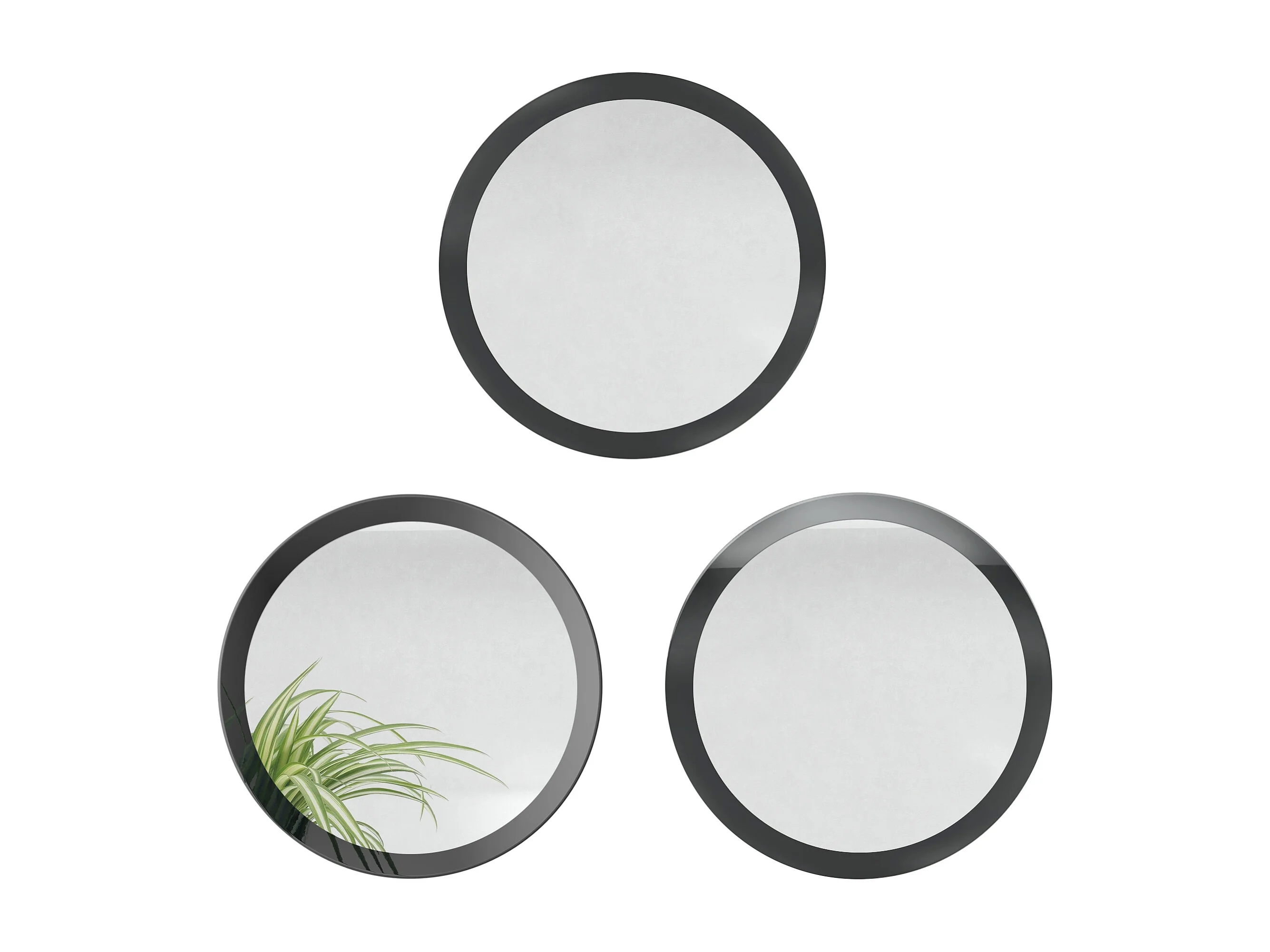Miroir Globe 50 cm, lot de 3, miroirs muraux ronds décoratifs pour l'entrée et le salon avec cadre en MDF noir haute brillance