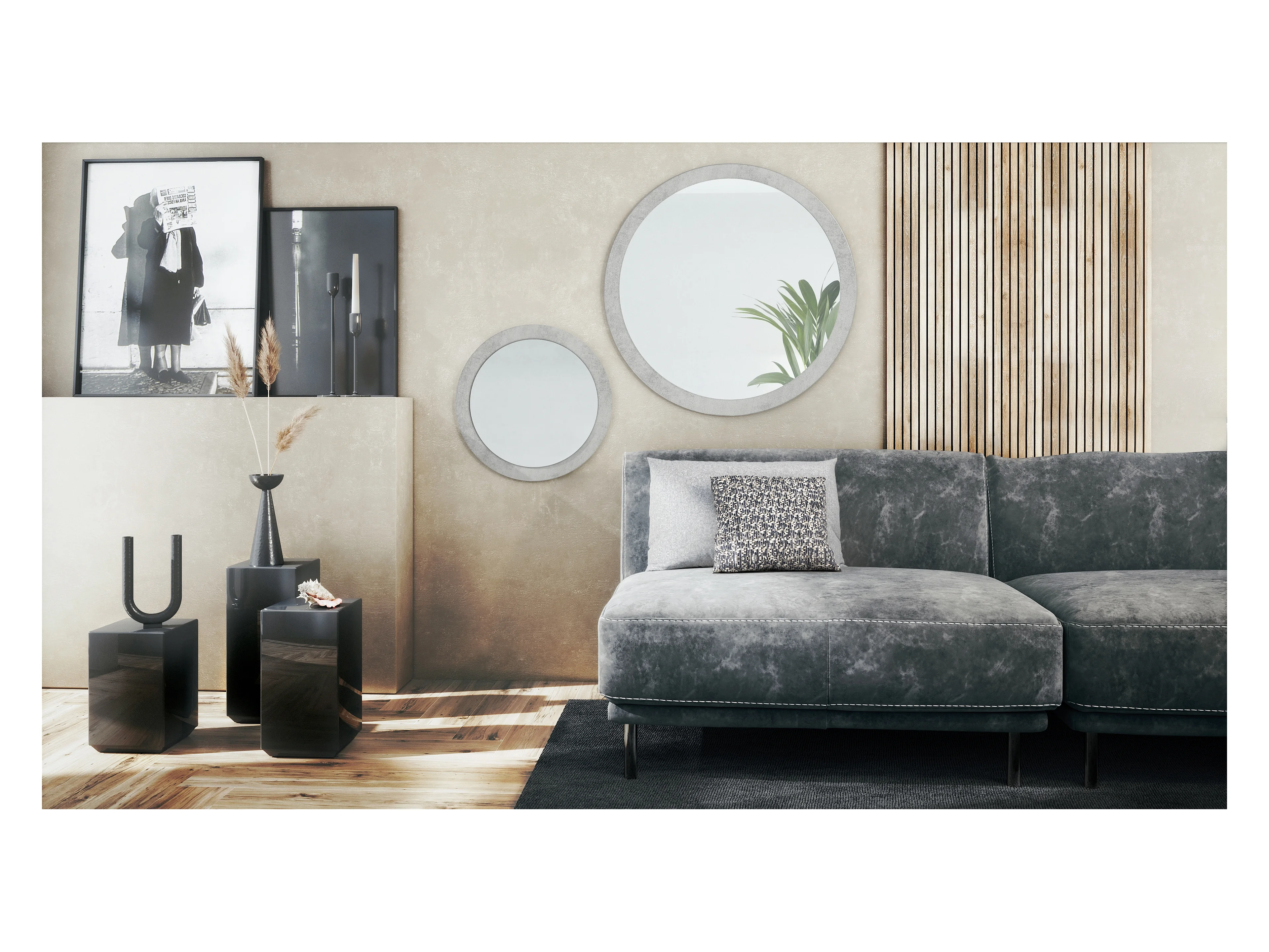 Miroir Globe Set 50 et 80 cm, 2 miroirs muraux ronds décoratifs pour l'entrée et le salon avec cadre en MDF aspect béton oxyde