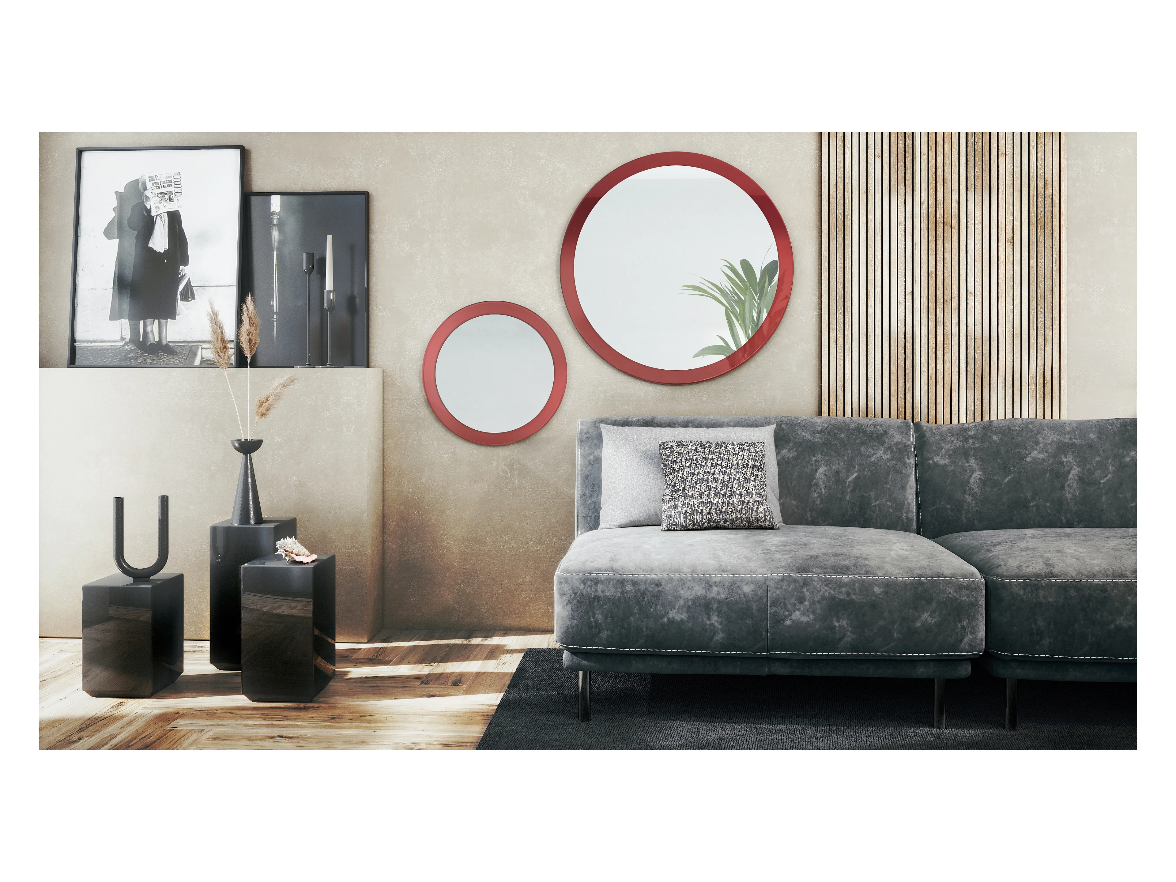 Miroir Globe Set 50 et 80 cm, 2 miroirs muraux ronds décoratifs pour l'entrée et le salon avec cadre en MDF bordeaux haute brillance