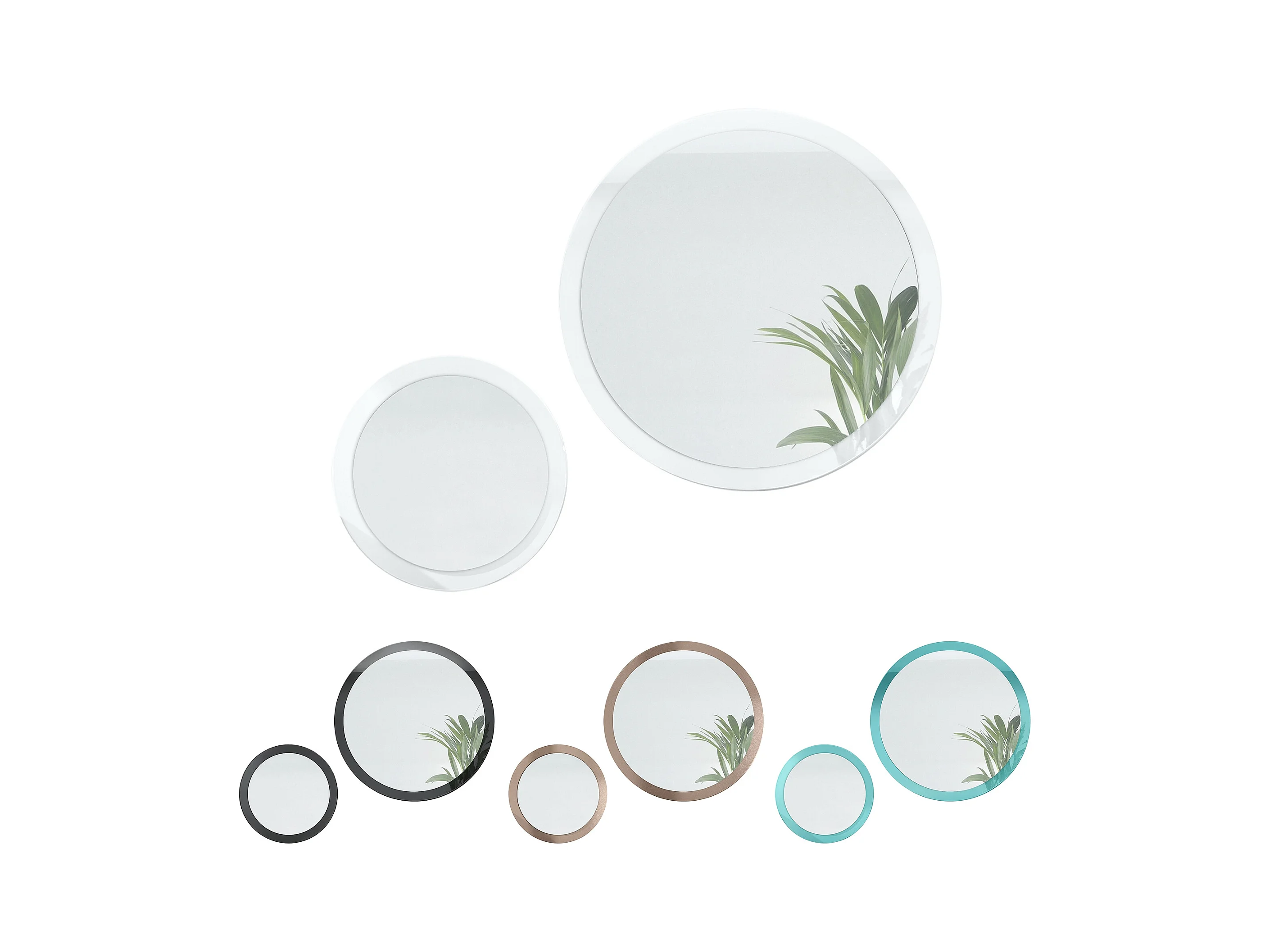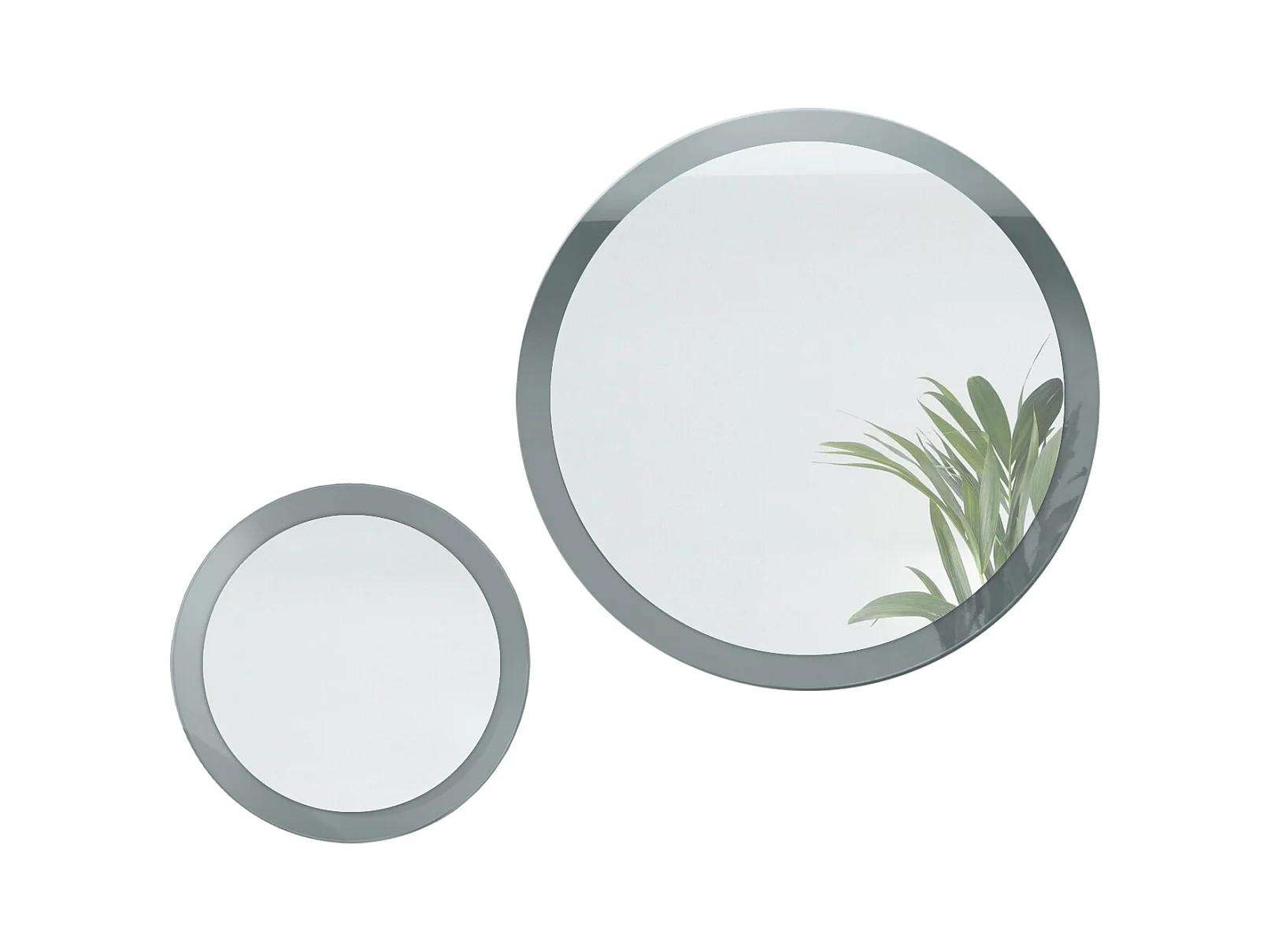Miroir Globe Set 50 et 80 cm, 2 miroirs muraux ronds décoratifs pour l'entrée et le salon avec cadre en MDF gris haute brillance