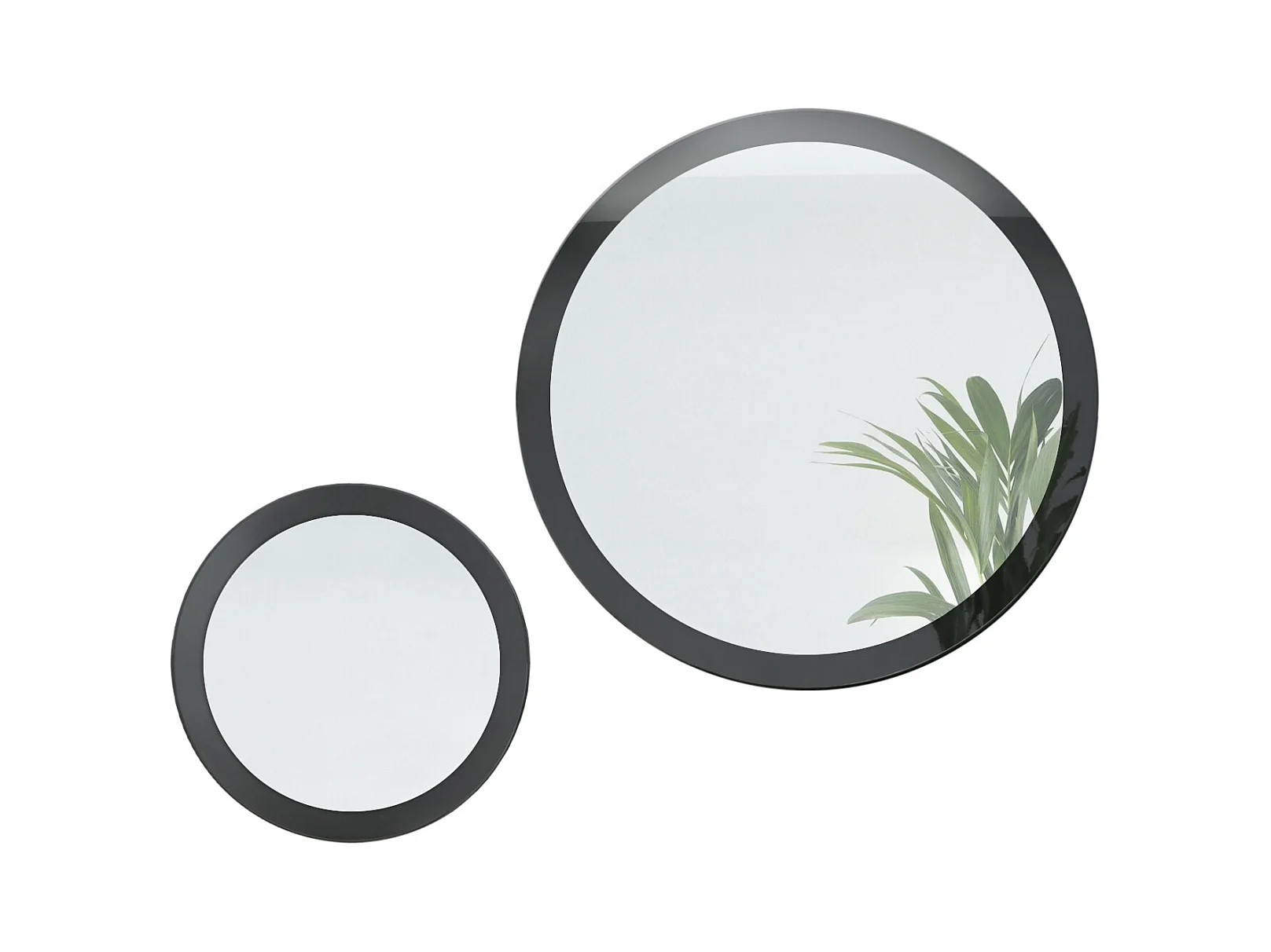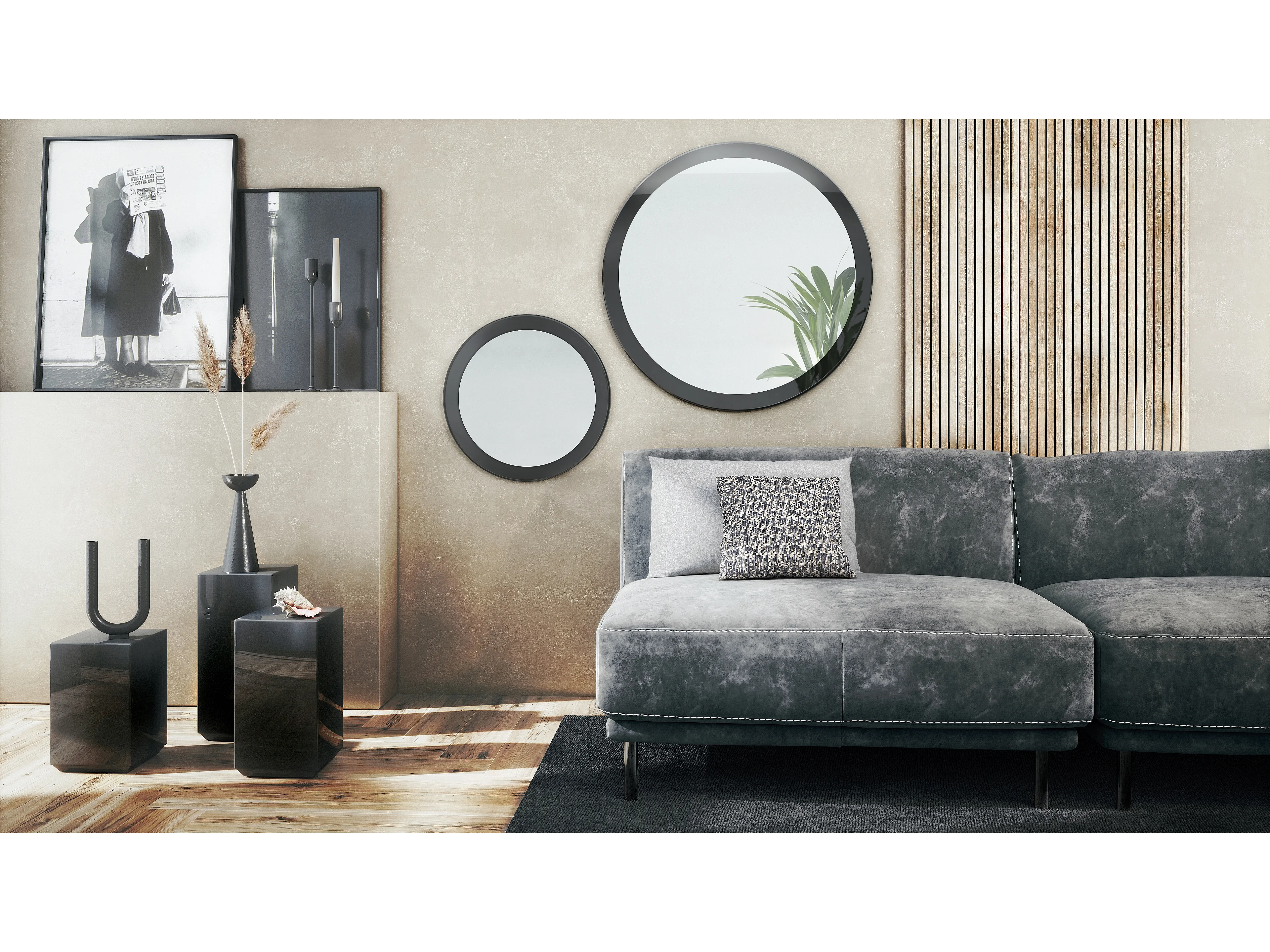 Miroir Globe Set 50 et 80 cm, 2 miroirs muraux ronds décoratifs pour l'entrée et le salon avec cadre en MDF noir haute brillance