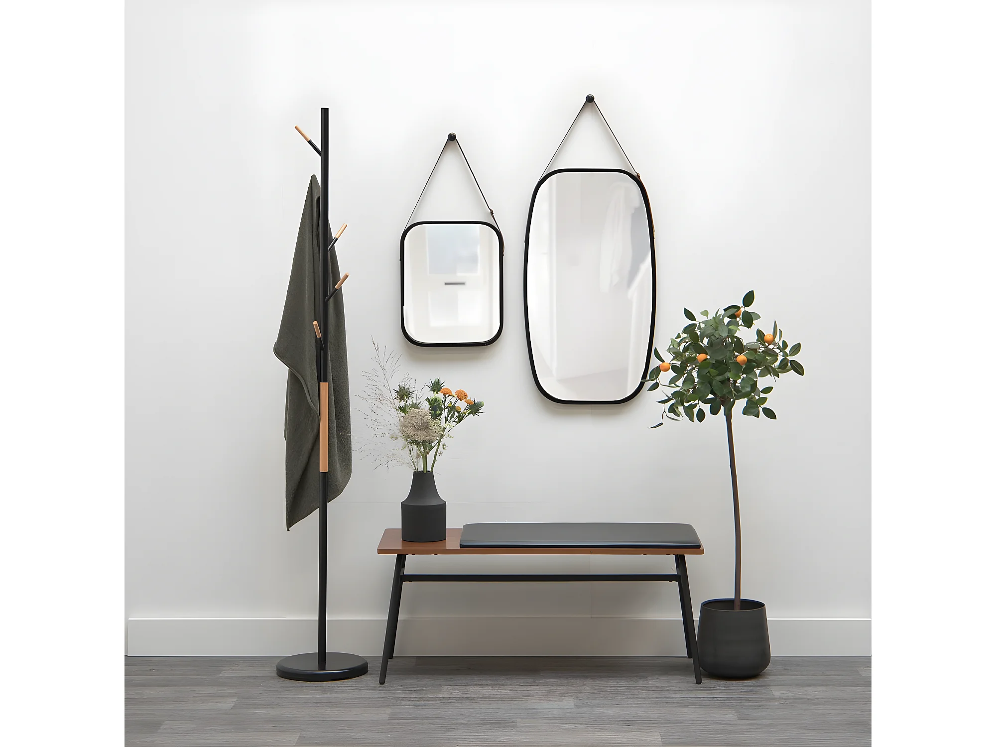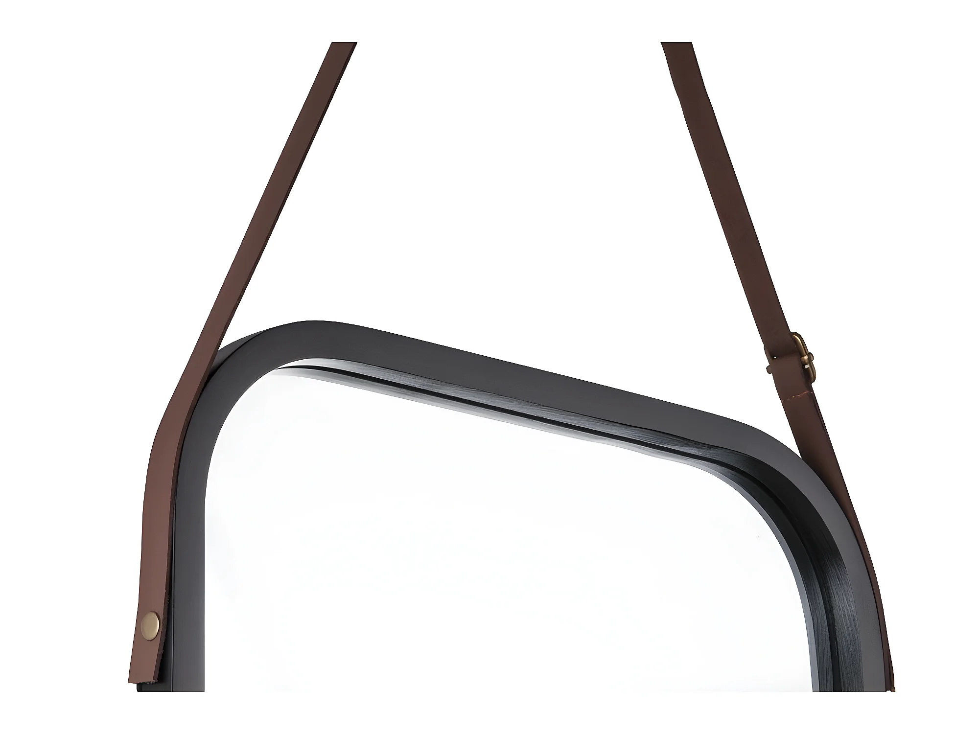 Miroir biseauté en bois d'eucalyptus avec moulures - L. 79 x H. 109 cm - Noir - ATALAYA