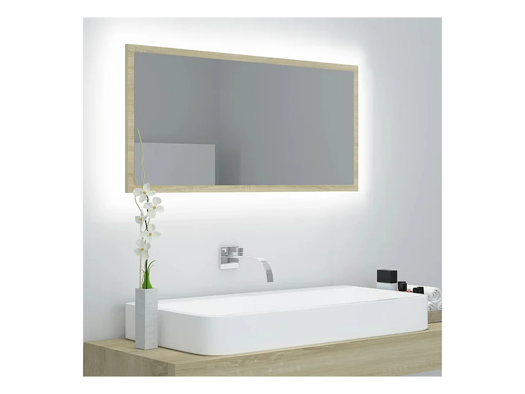 Miroir LED de salle de bain Chêne sonoma 90x8,5x37 cm Acrylique WVGQ4495