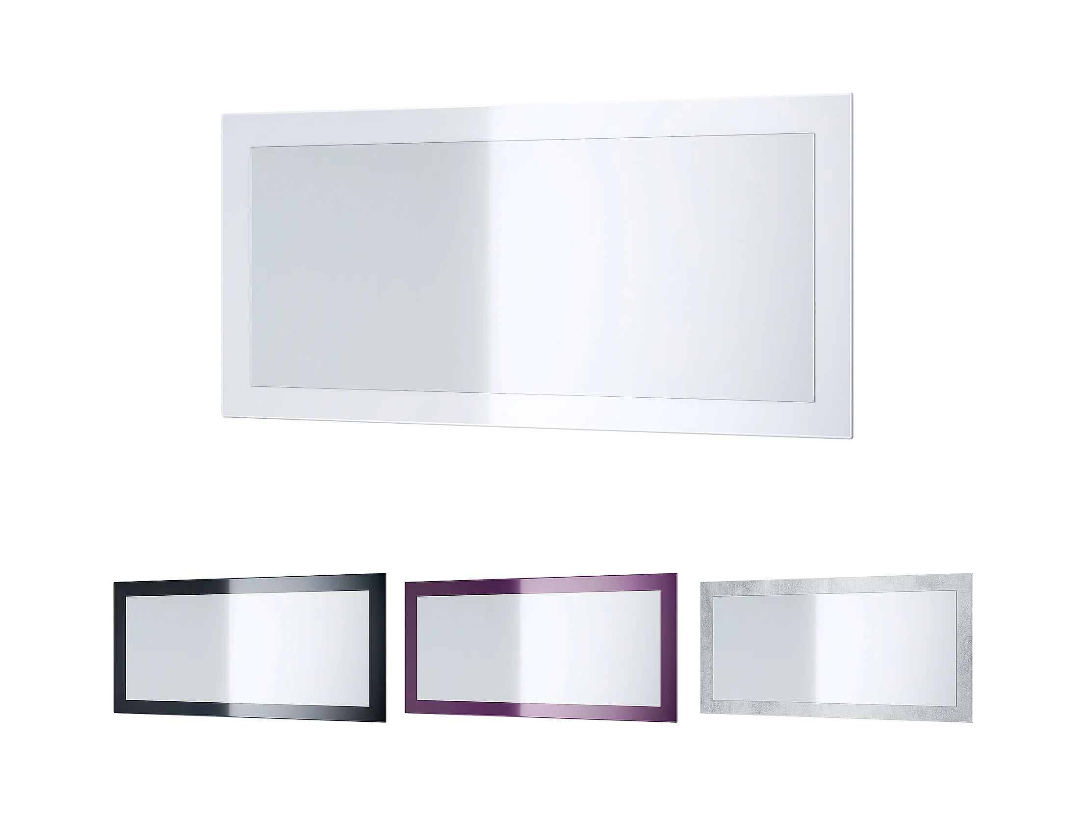 Miroir Lima, Miroir mural avec cadre de style moderne, Blanc haute brillance (110 x 52 cm)