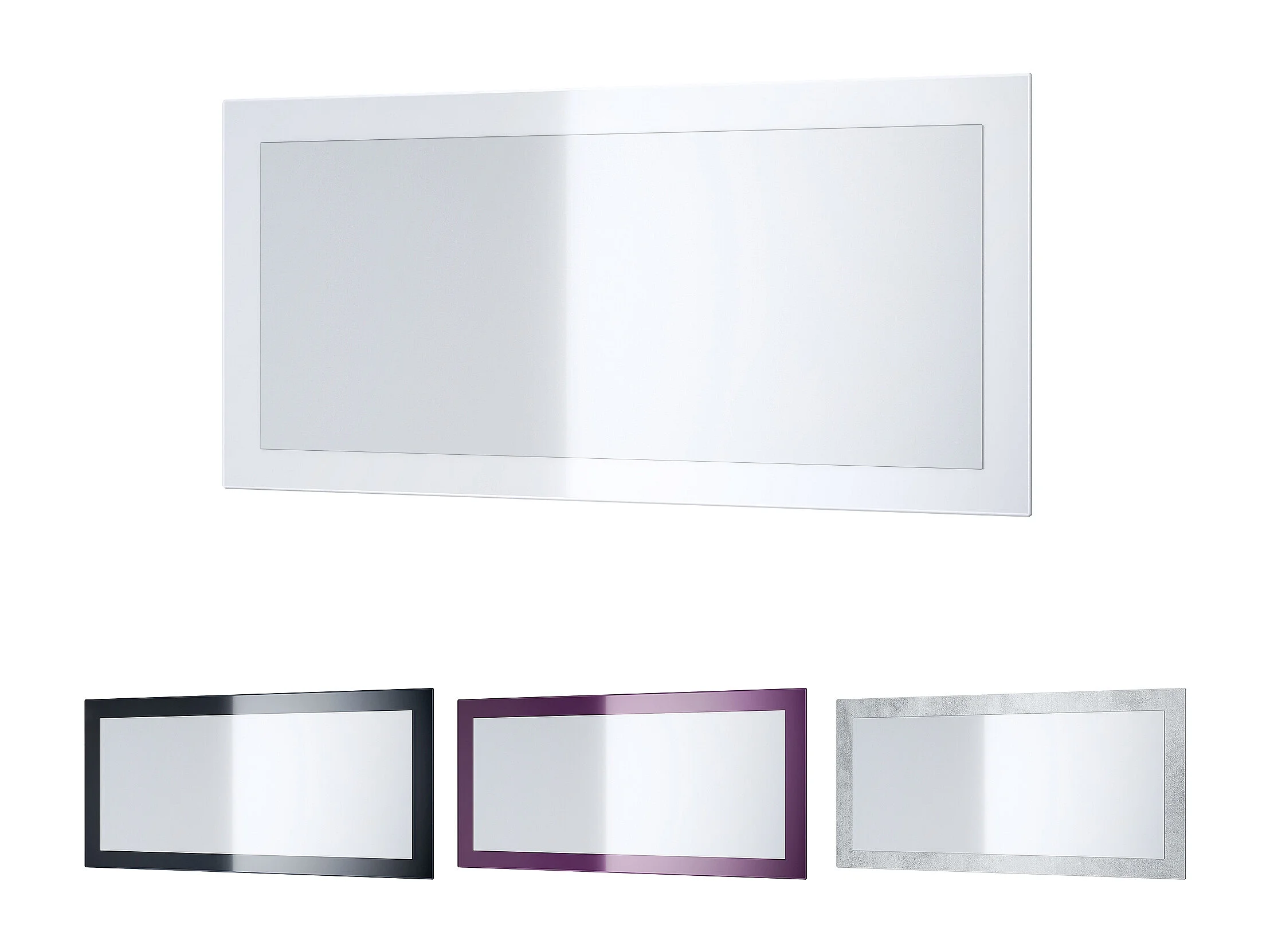 Miroir Lima, Miroir mural avec cadre de style moderne, Blanc haute brillance (139 x 55 cm)