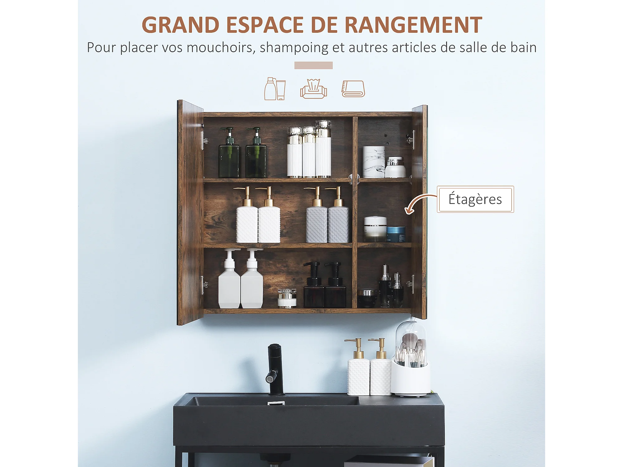 Miroir lumineux LED armoire murale design de salle de bain 2 en 1 dim. 70L x 15l x 65H cm MDF aspect bois