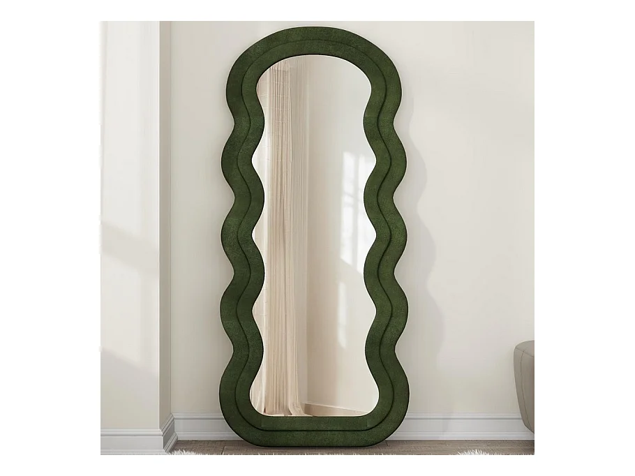 Miroir moderne avec encadrement vert olive en forme de vagues WAVY