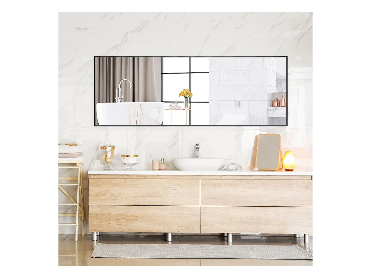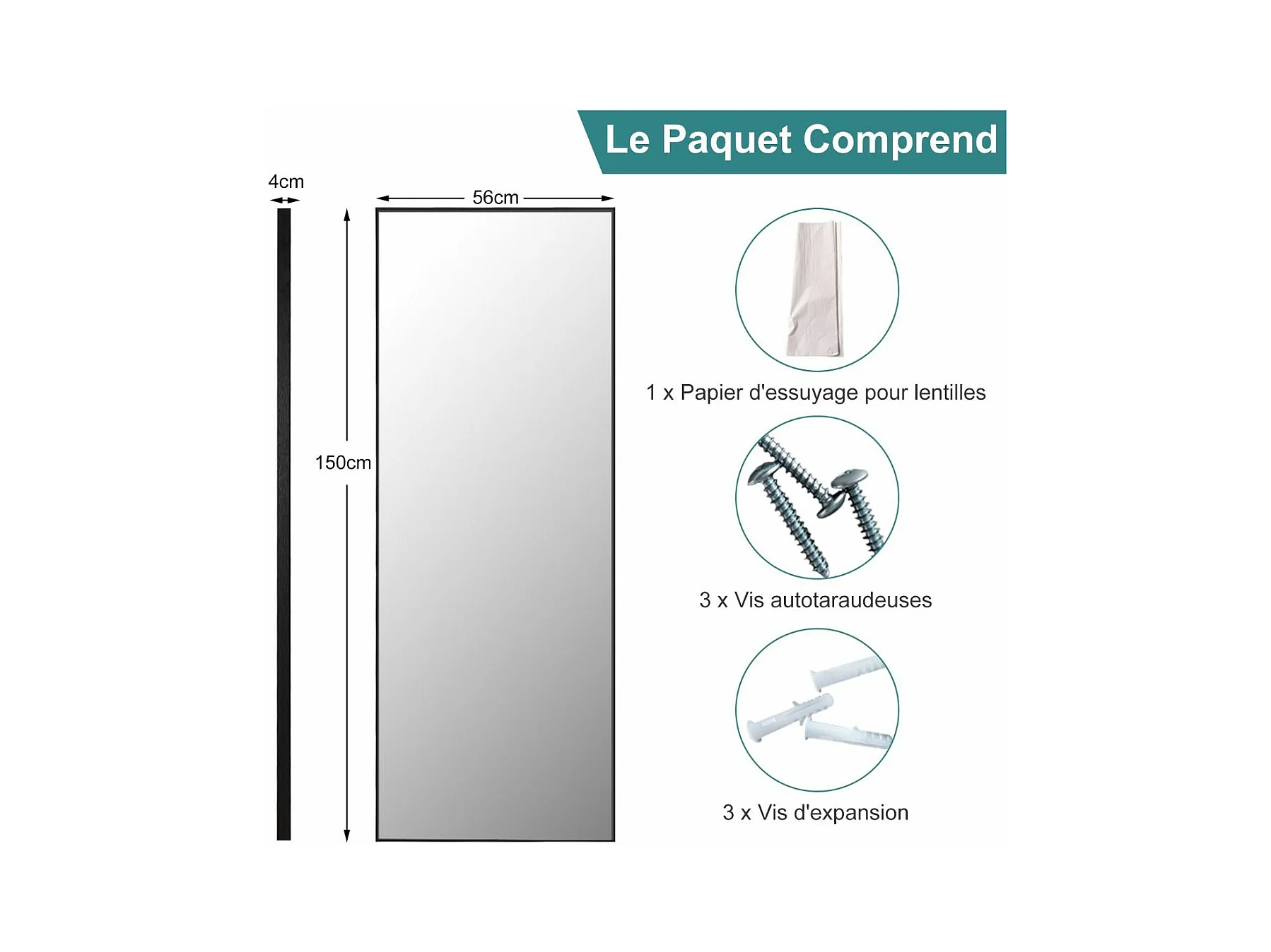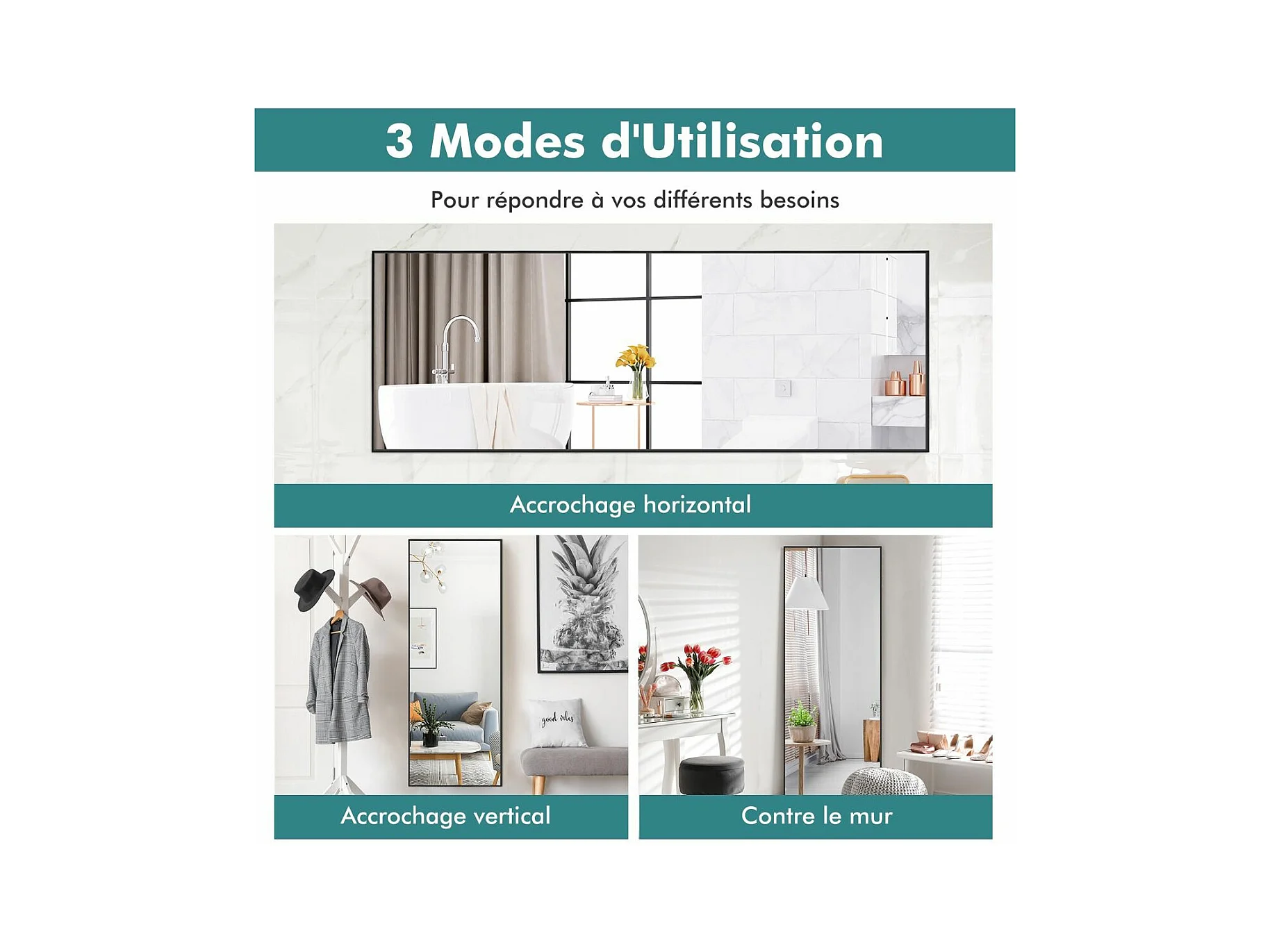 Miroir Mural avec cadre aluminium 150x4x56cm, HD Miroir en verre antidéflagrant, Miroir en Pleine Longueur pour Installation Horizontale ou Verticale, pour salle de bain, chambre, salon (Noir)