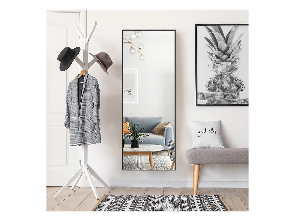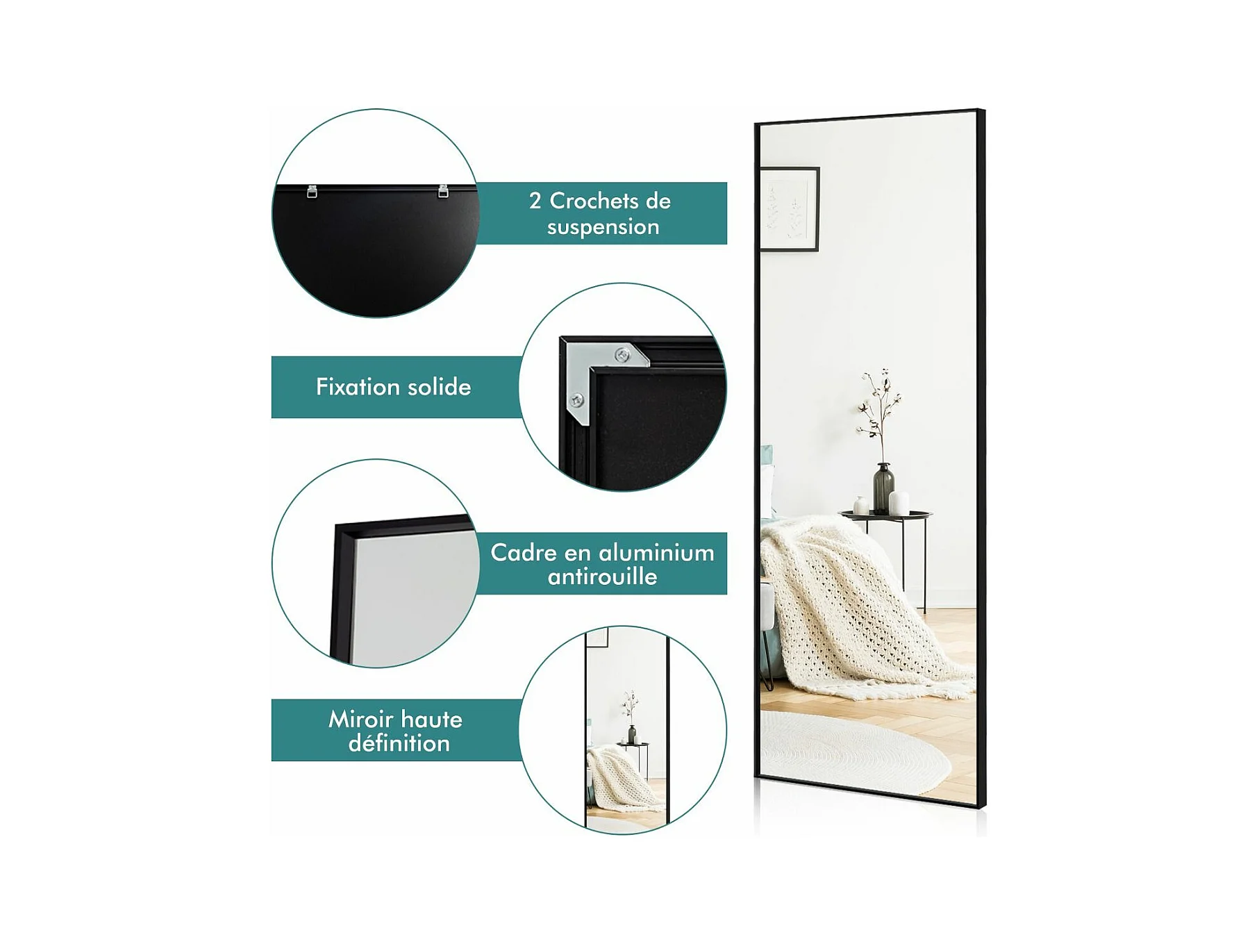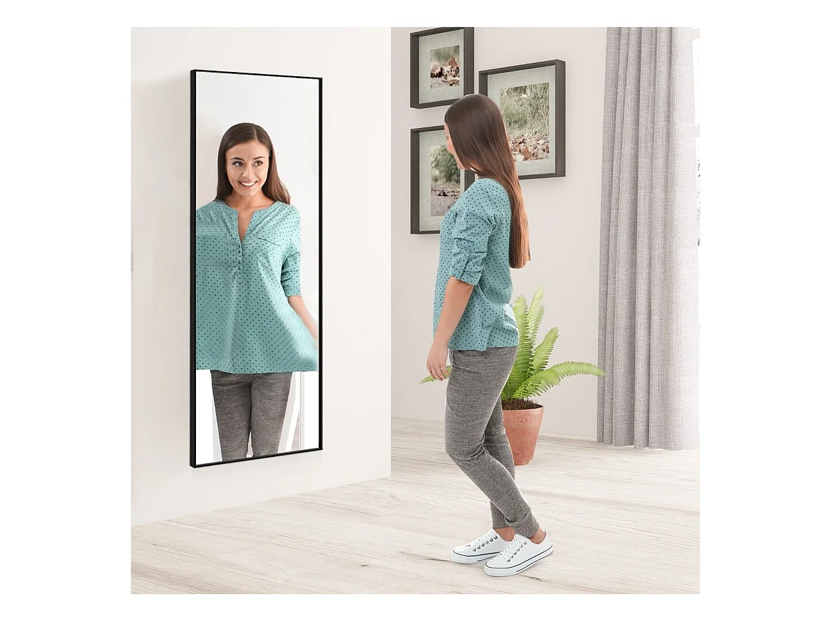 Miroir Mural avec cadre aluminium 150x4x56cm, HD Miroir en verre antidéflagrant, Miroir en Pleine Longueur pour Installation Horizontale ou Verticale, pour salle de bain, chambre, salon (Noir)