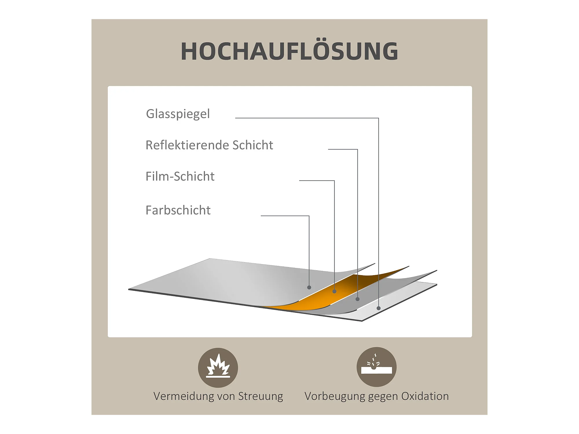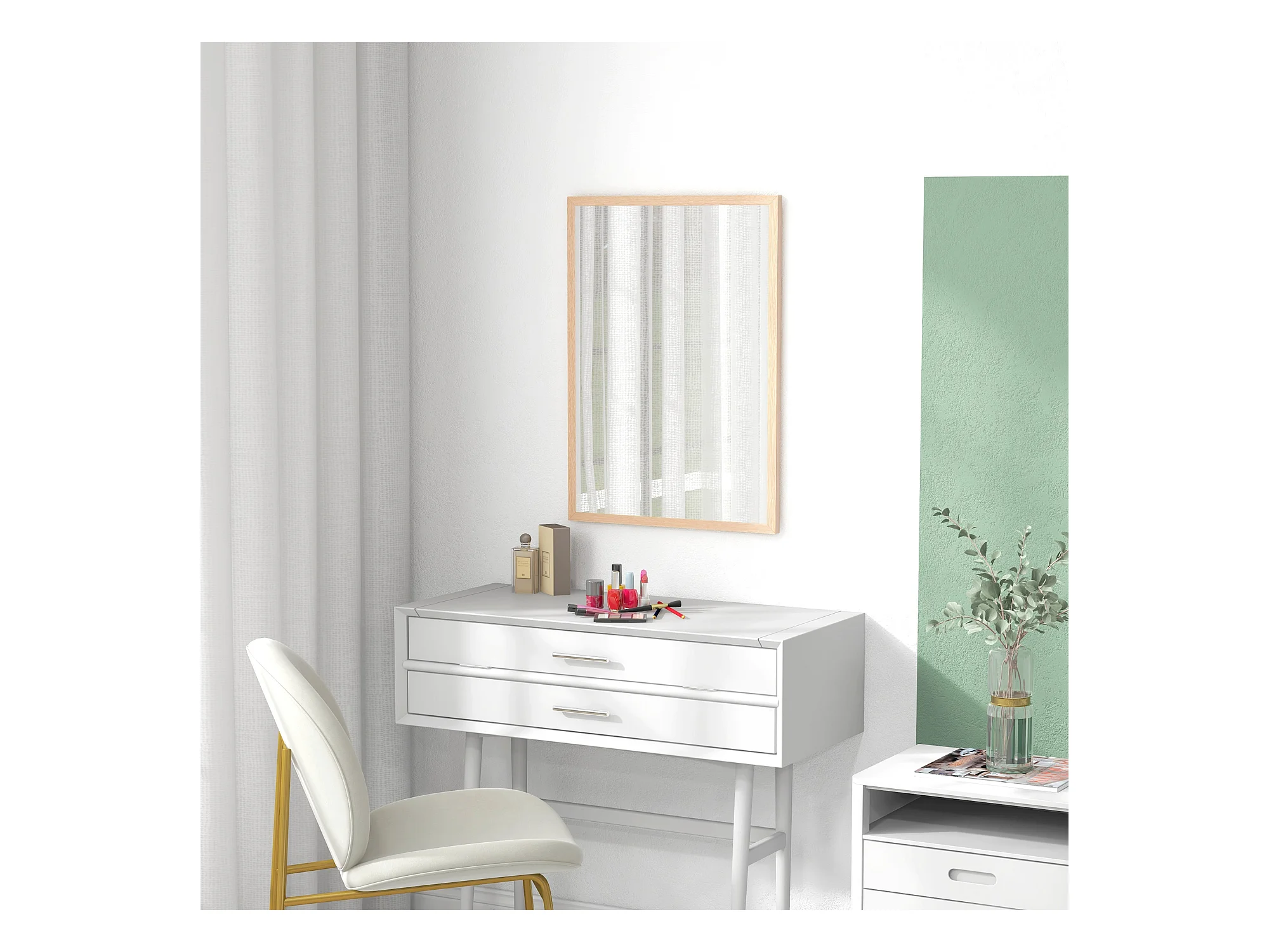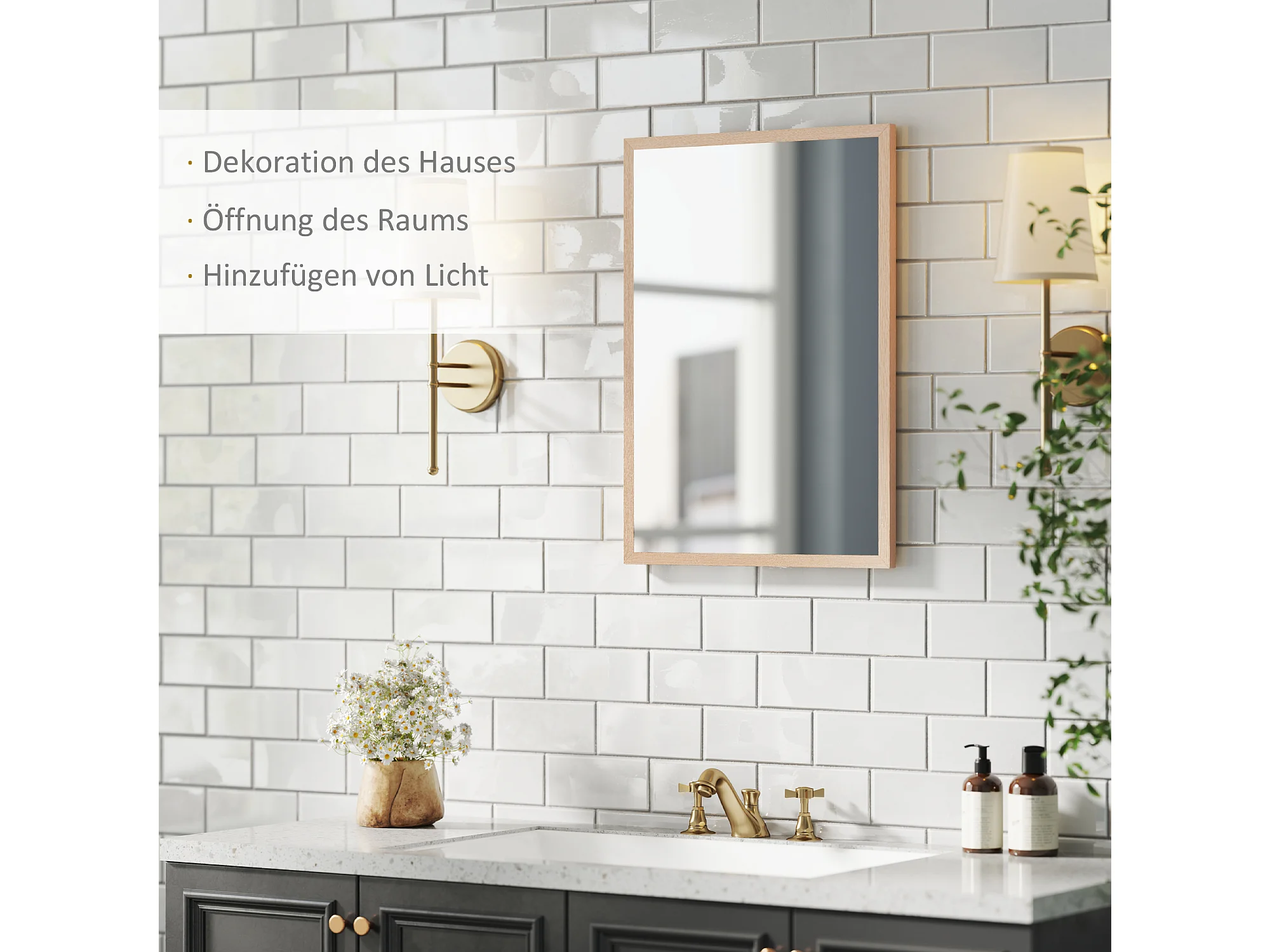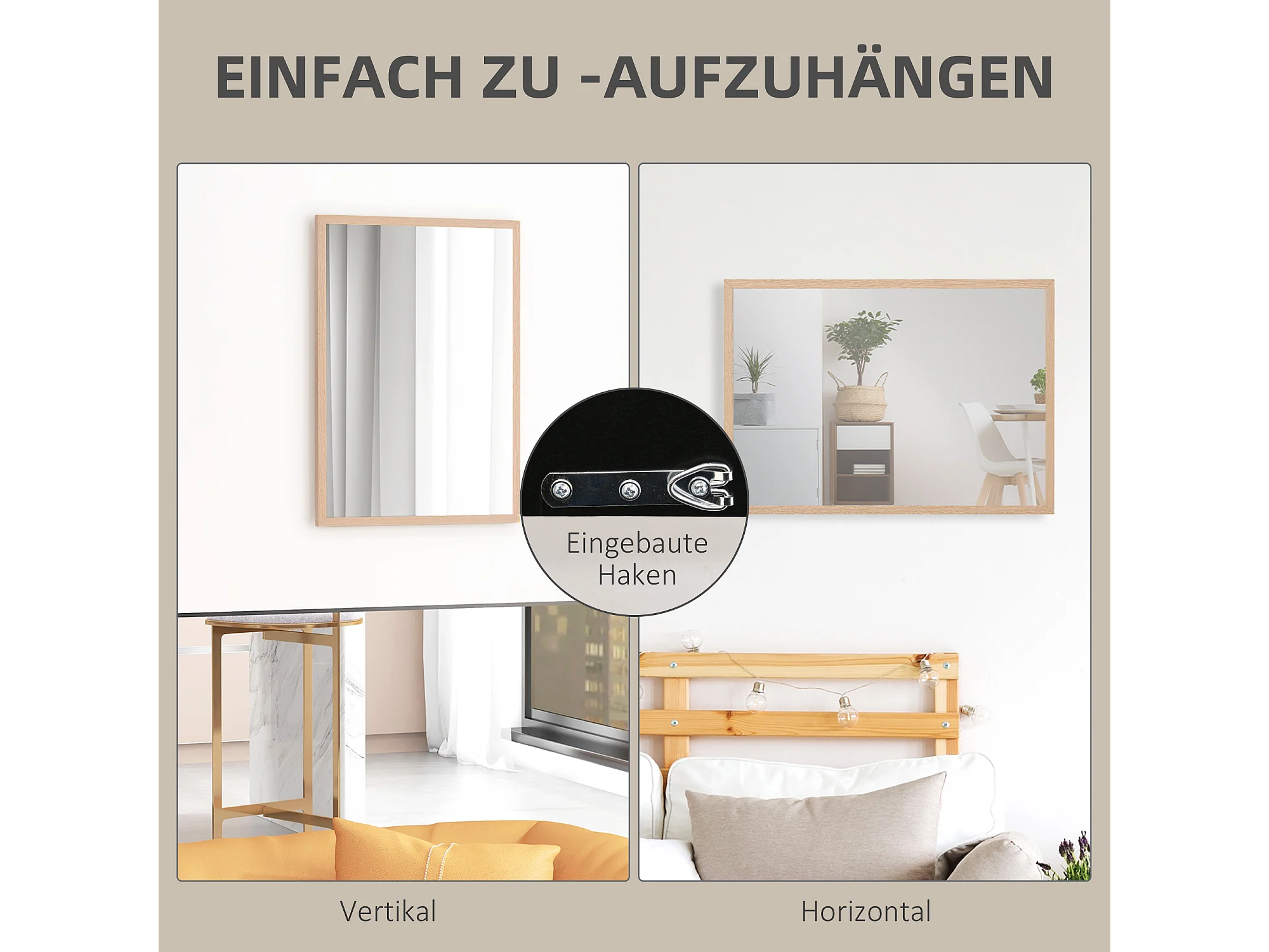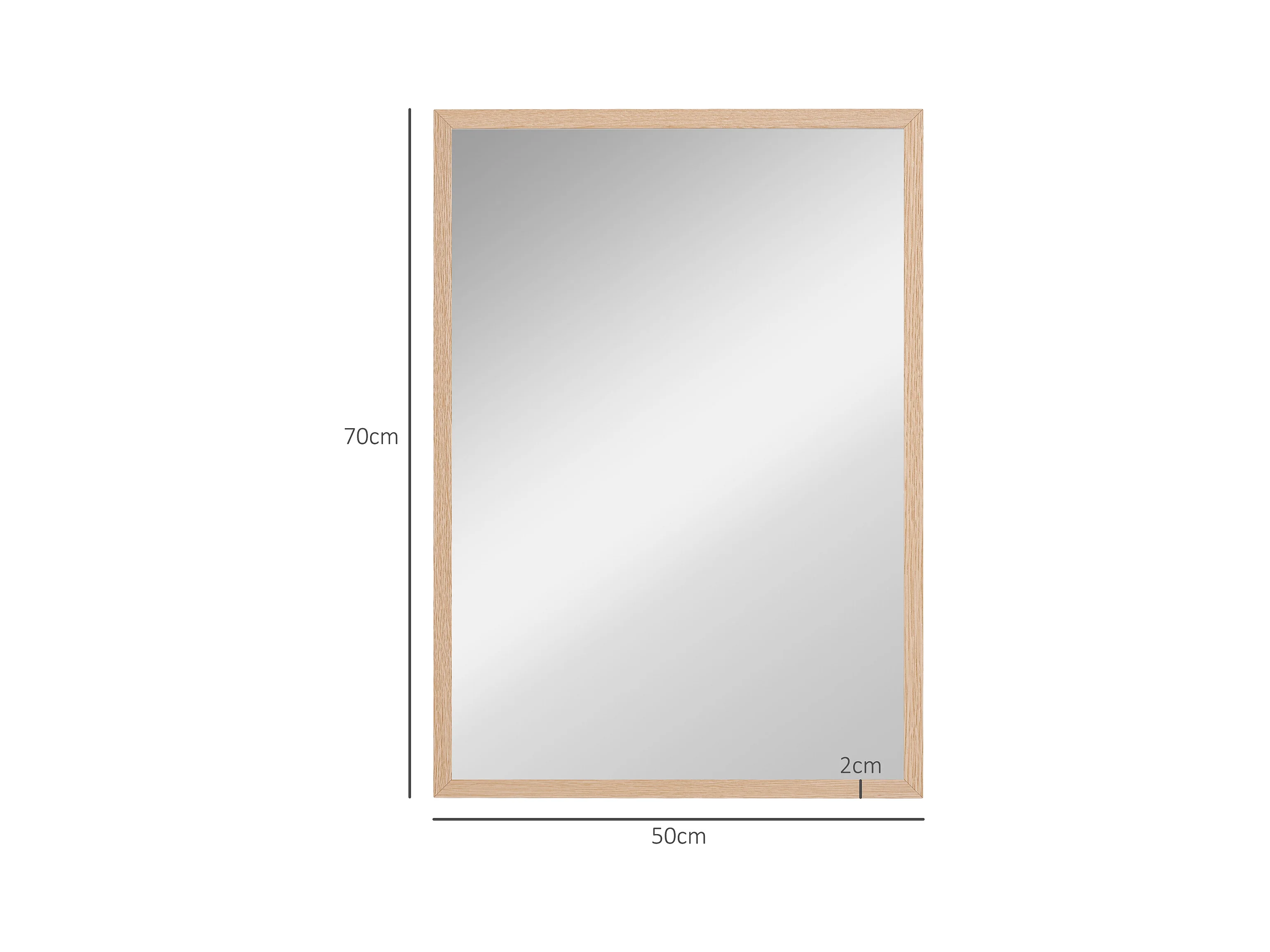 Miroir mural décoratif 50 x 70 cm avec 4 crochets, miroir rectangulaire pour chambre et salle de bain, cadre en MDF, bois naturel (50x2x70 cm)