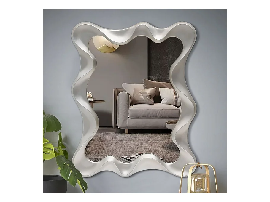 Miroir mural moderne couleur argent 90 x 70 cm OVIDE
