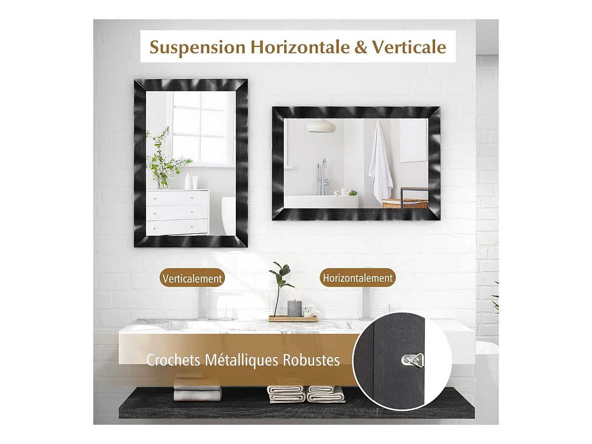Miroir mural noir 80x60 cm métal FR92103