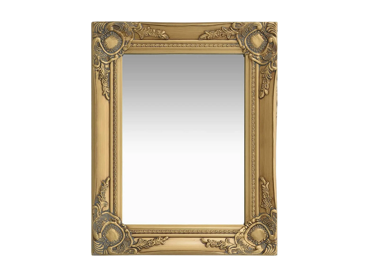Miroir mural arqué vintage, cadre baroque orné, miroir et résine, or antique (80x4.5x59 cm)