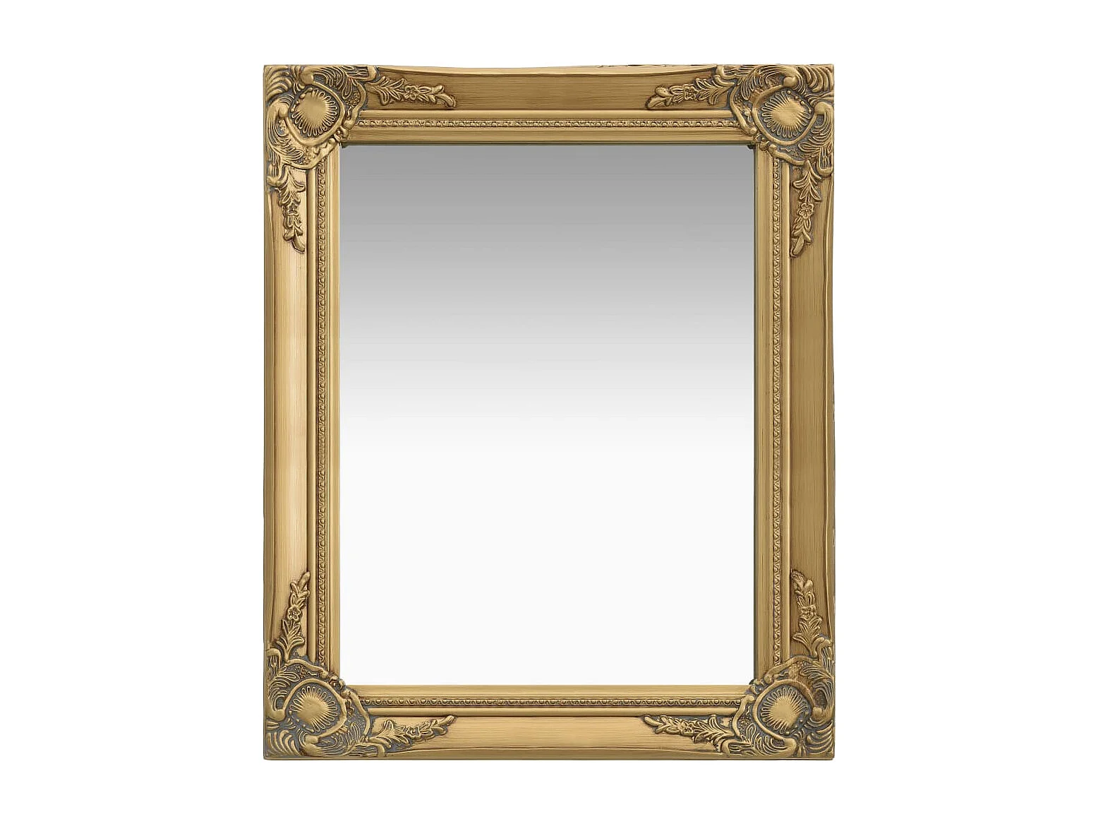 Miroir mural arqué vintage, cadre baroque orné, miroir et résine, or antique (80x4.5x59 cm)