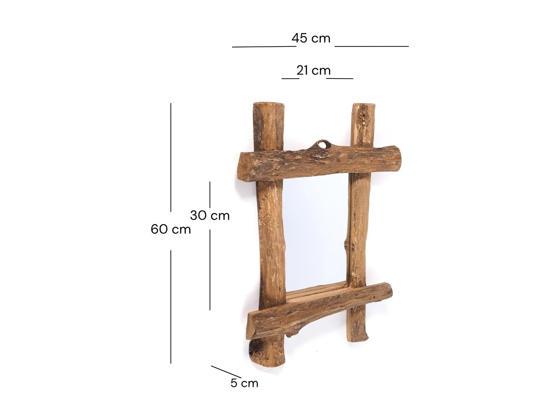 MIROIR MURAL Harmonica 56x37 cm Bois flotté en teck couleurs naturelles