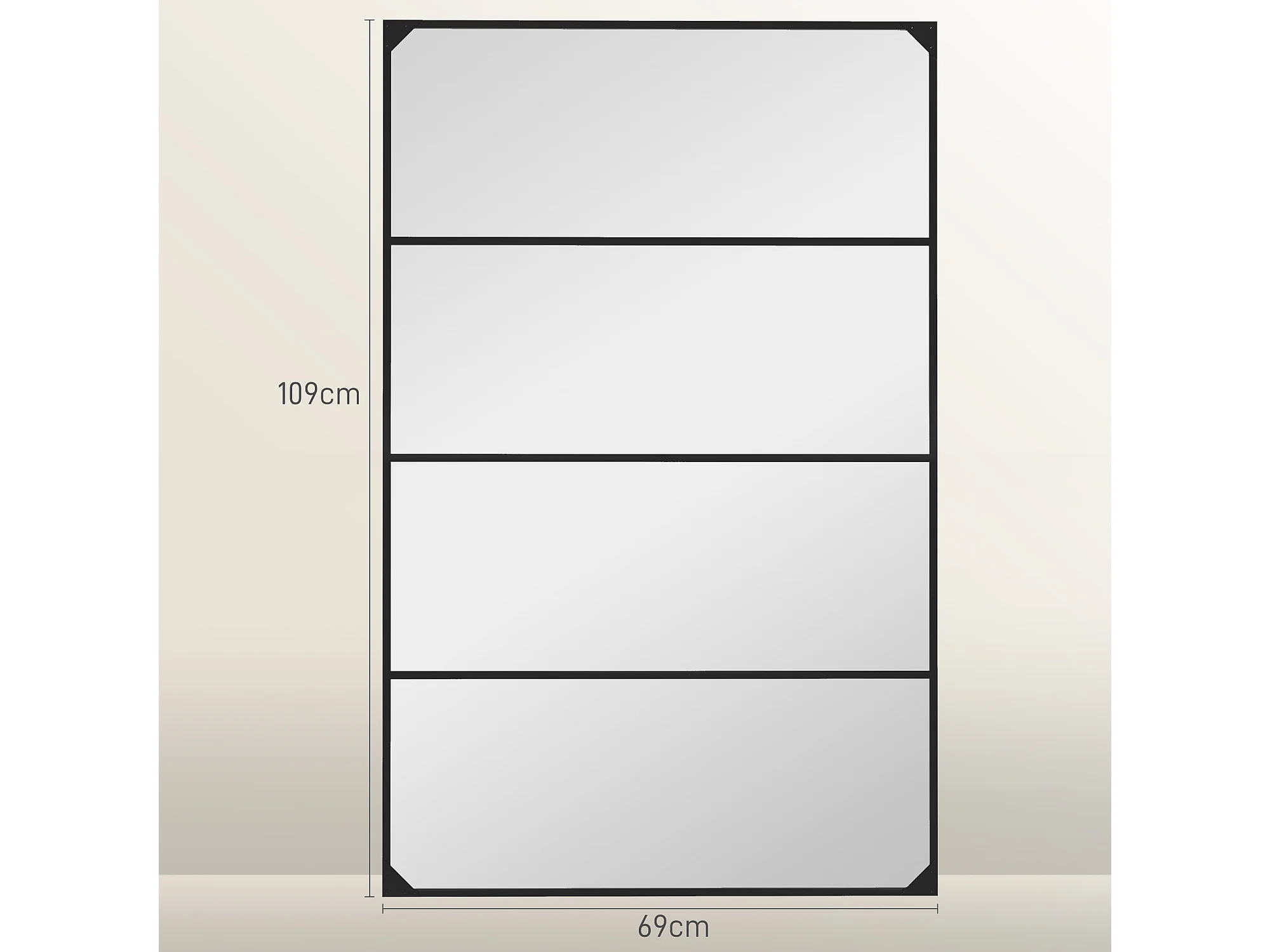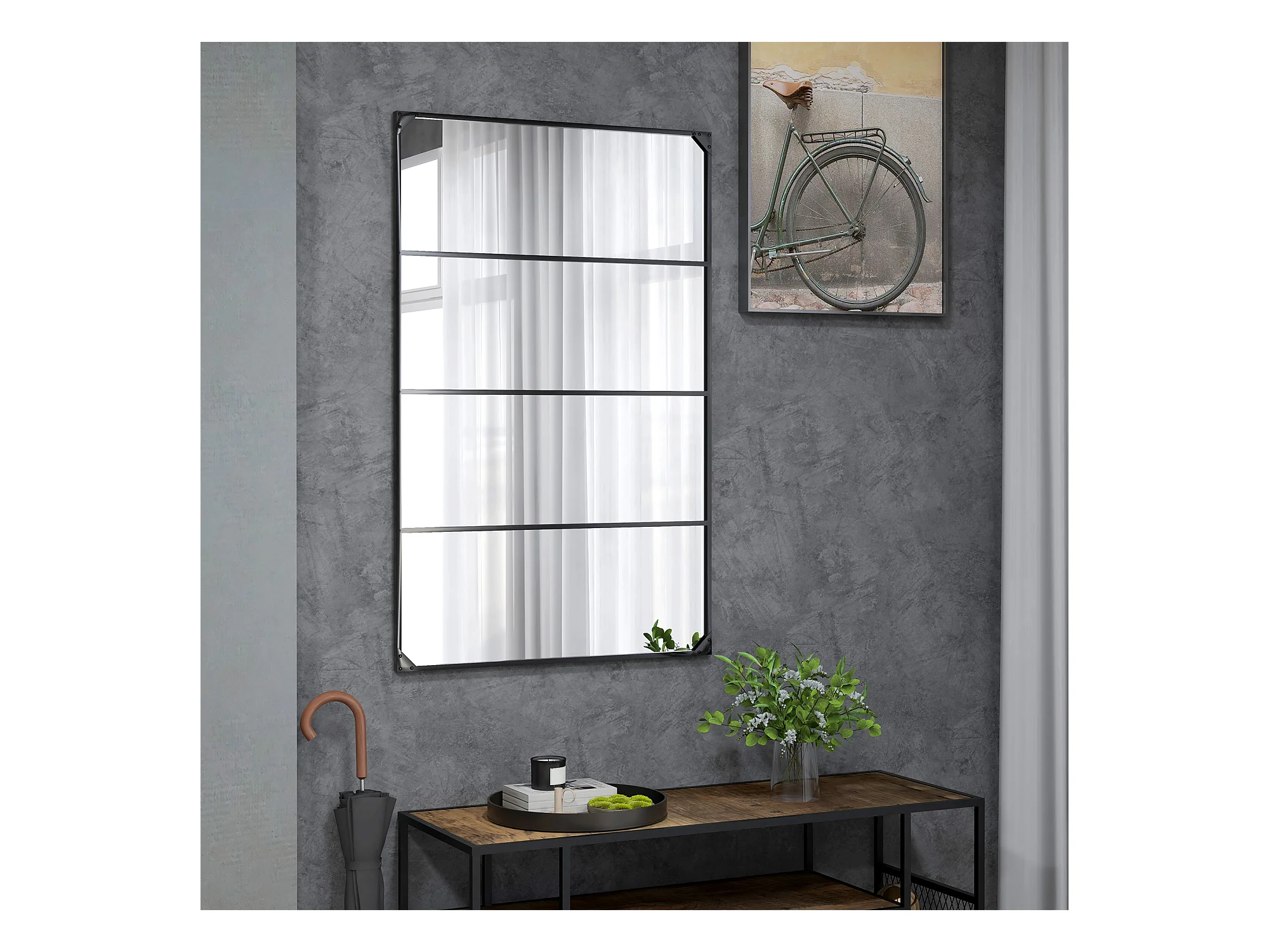 Miroir mural verrière rectangulaire style industriel - horizontal ou vertical - 4 crochets - métal noir