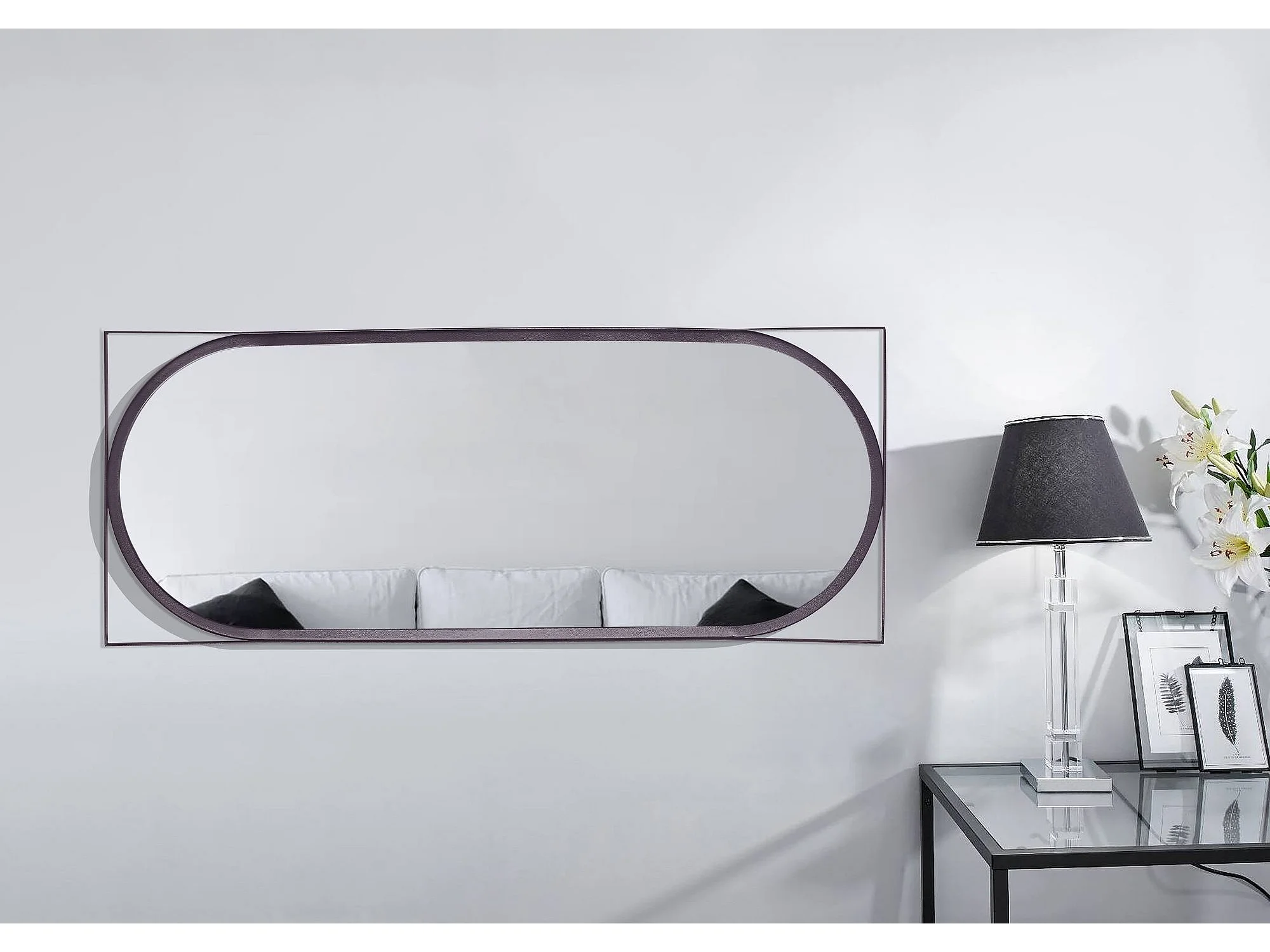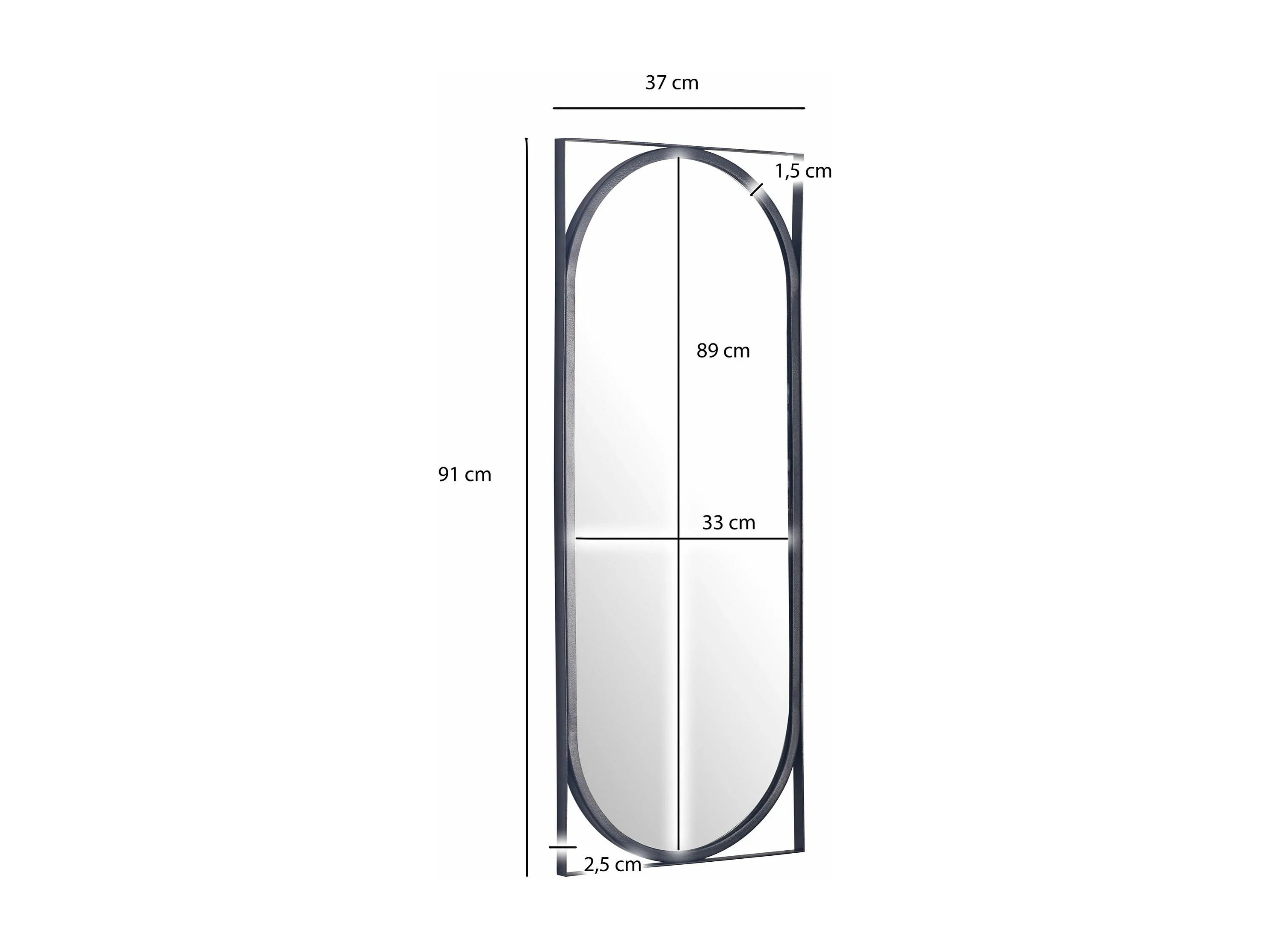 Miroir Murale Métal 37x91 cm Miroir Mur Couloir Grand Moderne Ovale Noir