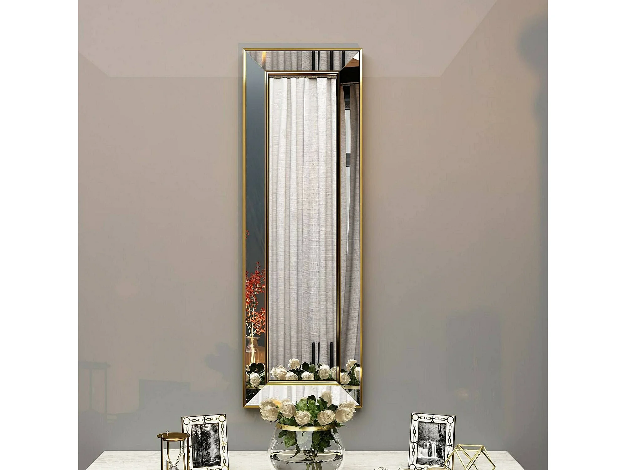 Grand miroir en métal- L. 60 x H. 160 cm - Doré - KARIAN