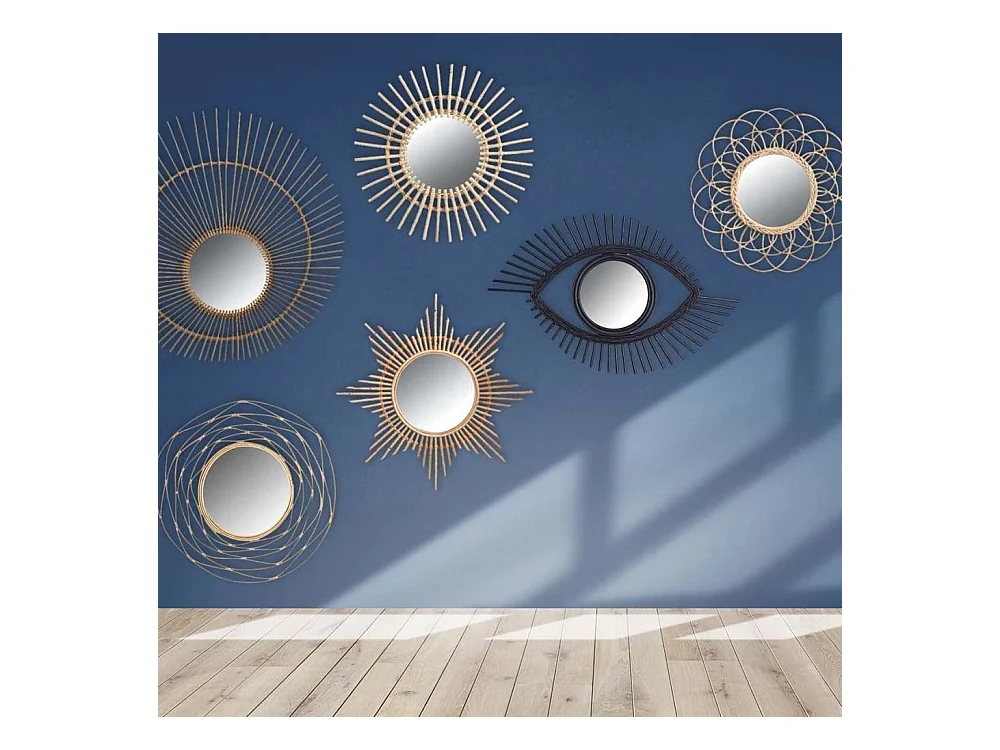 Miroir Mural Design en Rotin "Aina" 43cm Noir