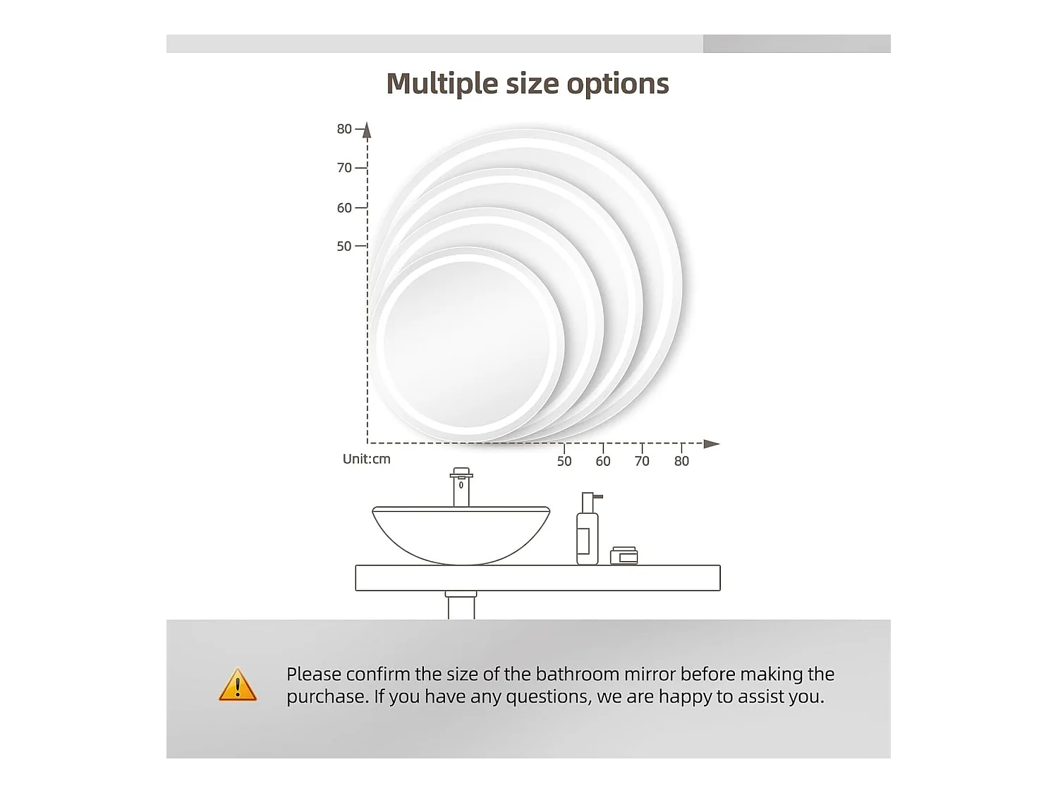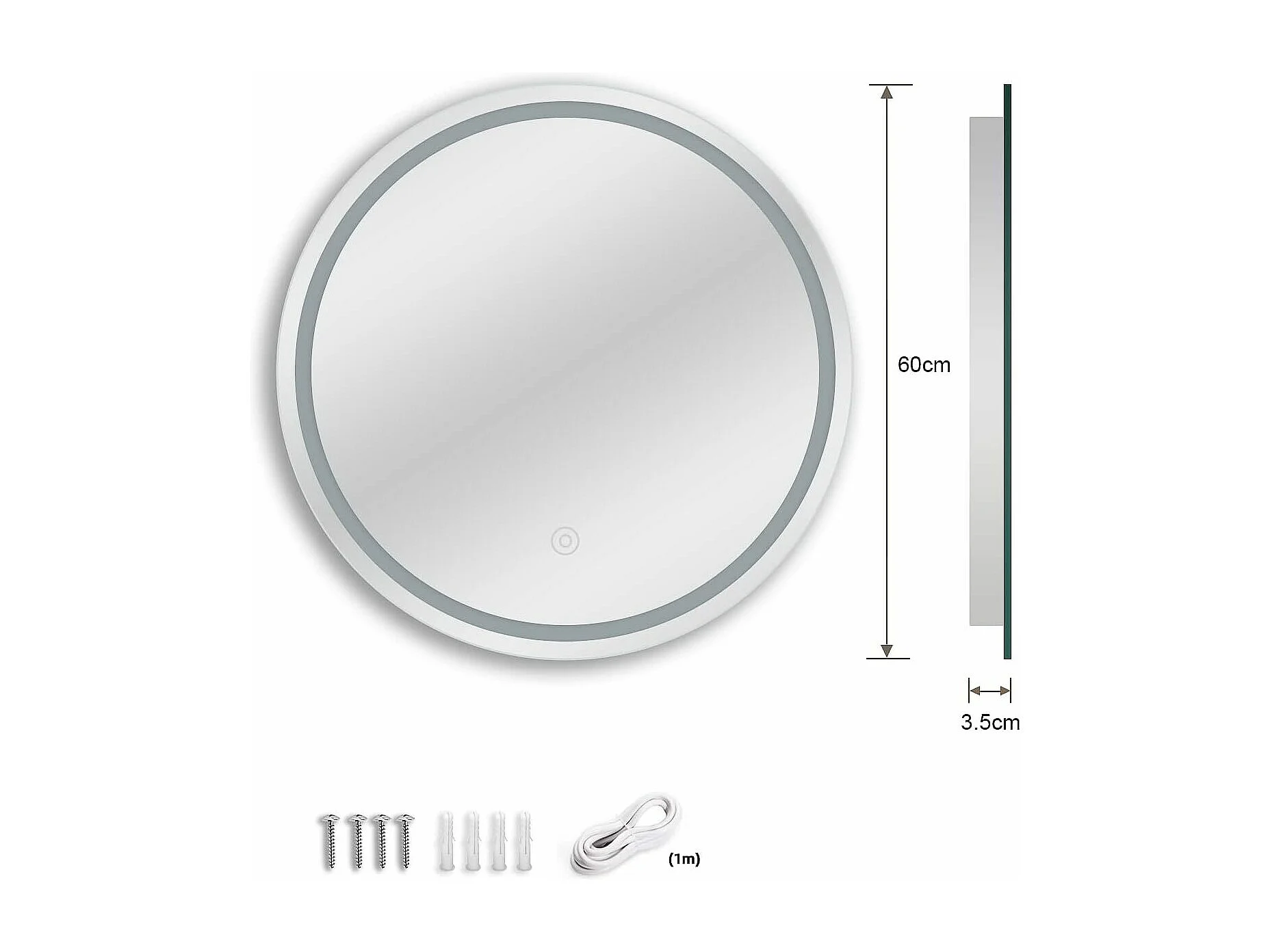 Miroir rond avec éclairage,Miroir de salle de bain LED avec interrupteur tactile,anti-buée,Blanc 60 x 60 cm