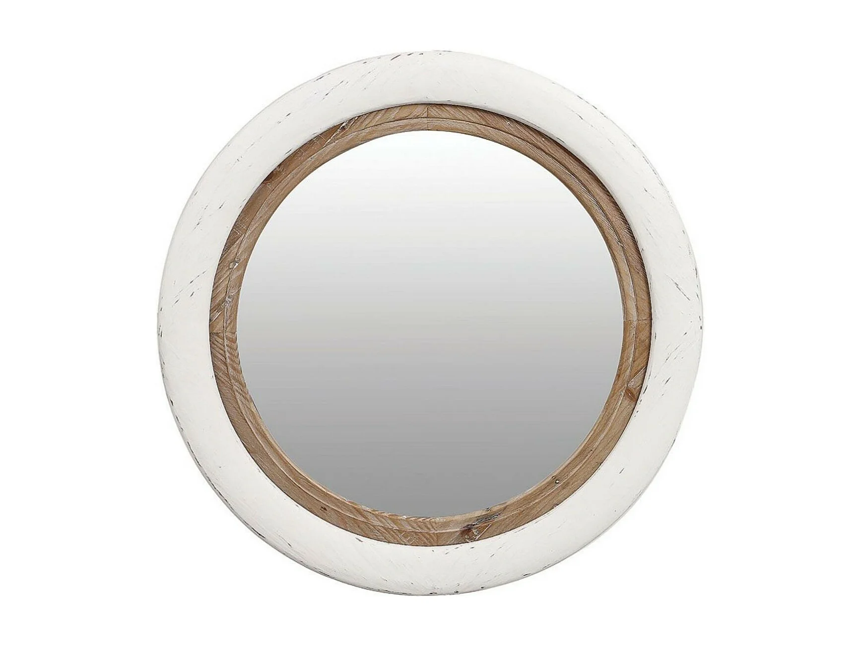 Miroir mural rond en bois blanc antique TANUZ – Ø 80cm