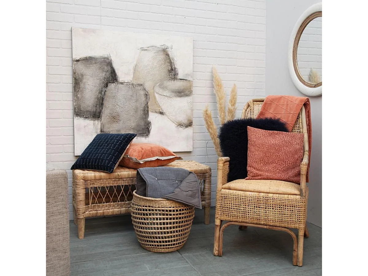 Coussin décoratif déhoussable en coton motifs brodés Ocre 45 x 45 cm