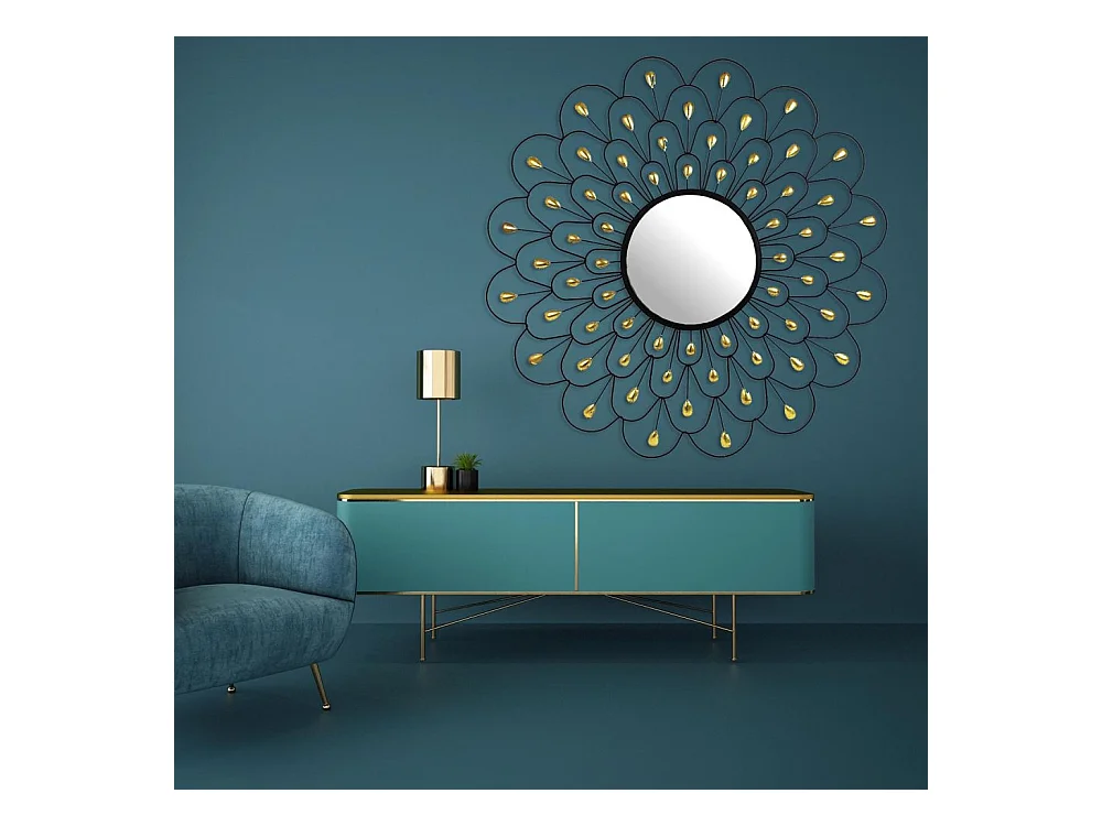 Miroir mural en métal noir et doré 79x6x86,5 cm