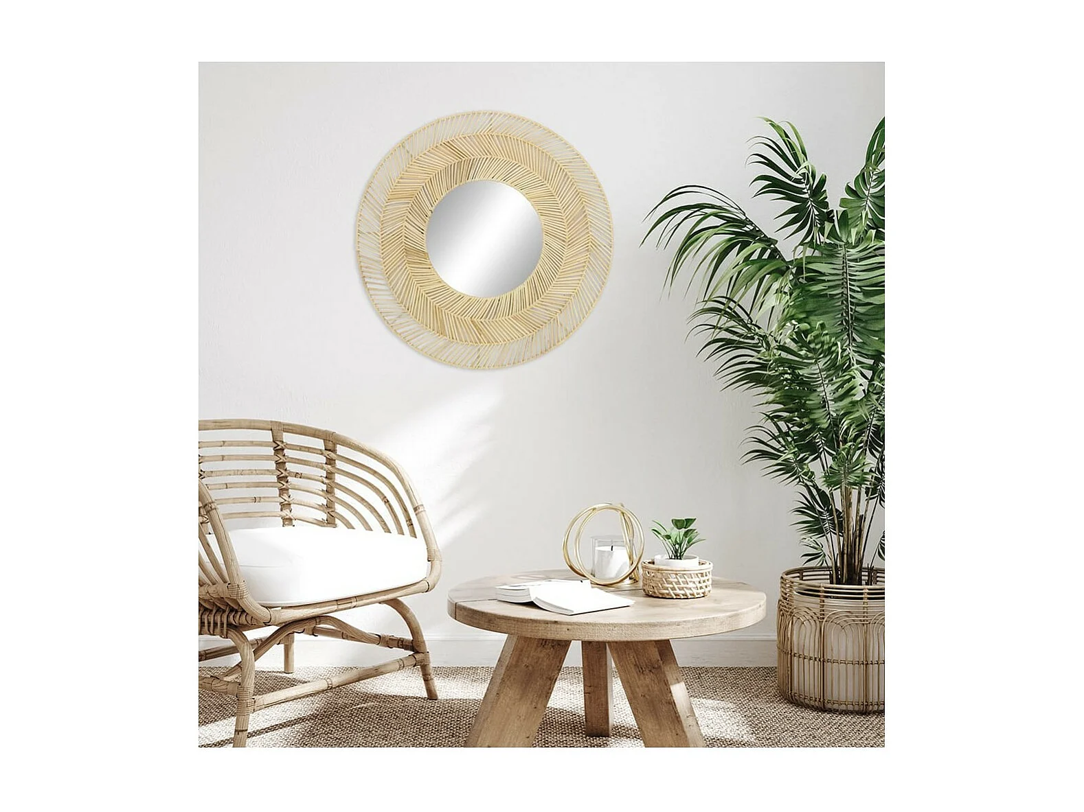 Lampadaire ethnique en fer et rotin - H.177 cm - naturel et blanc - PARNAIBA