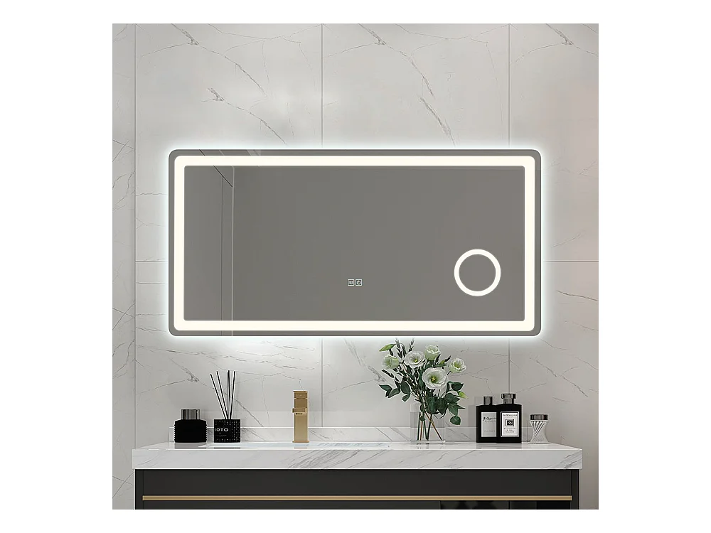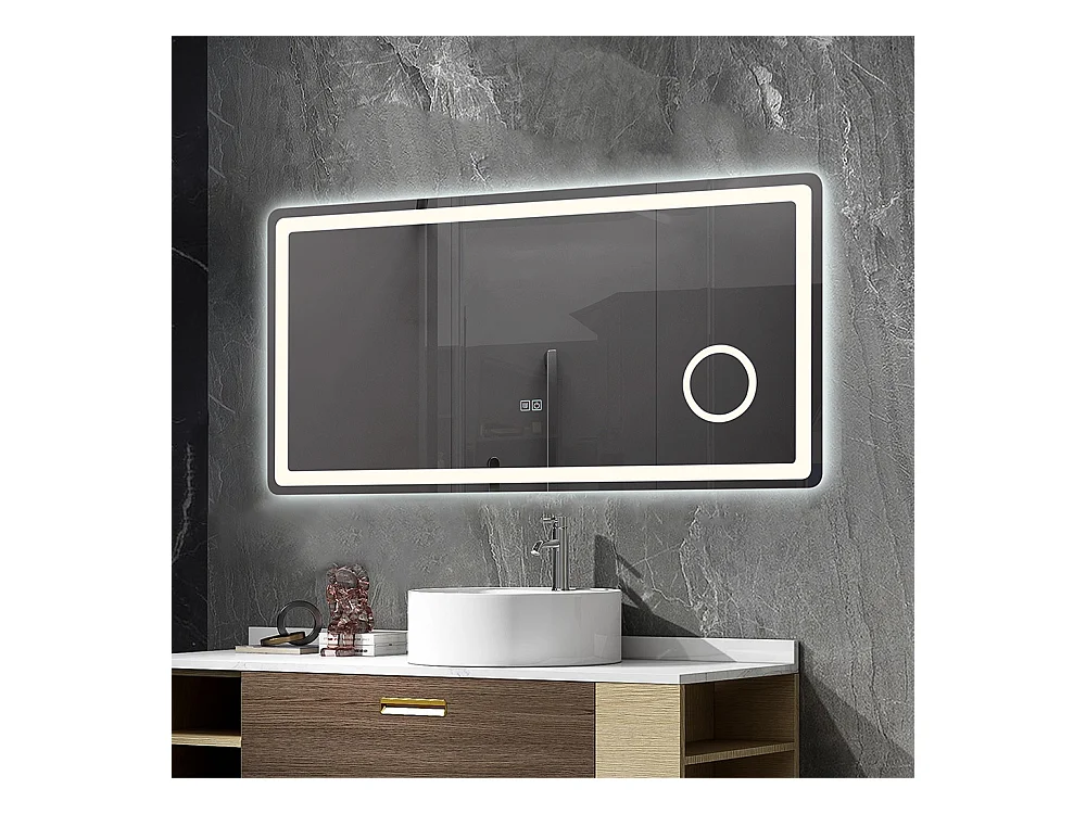 Miroir salle de bain LED 110x60cm anti buée avec LED 3 couleurs et loupe x3 LB-3612