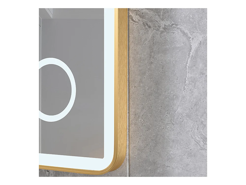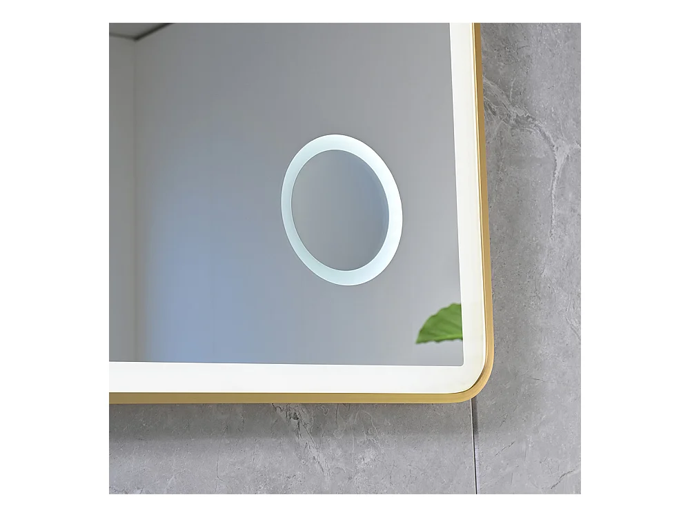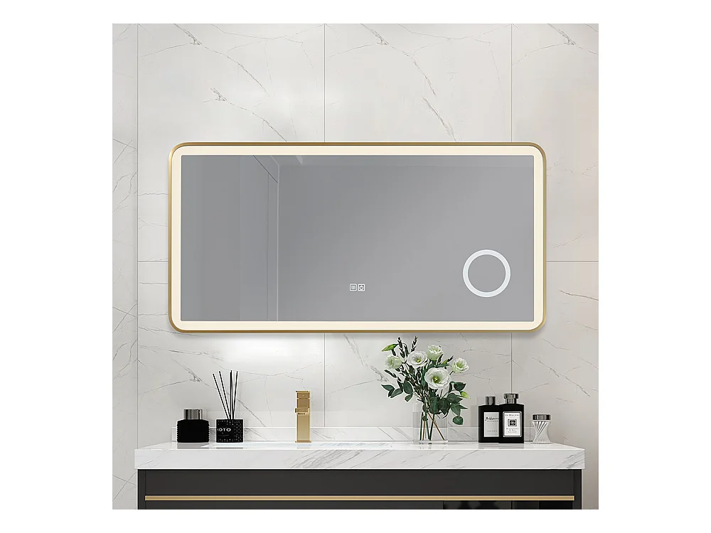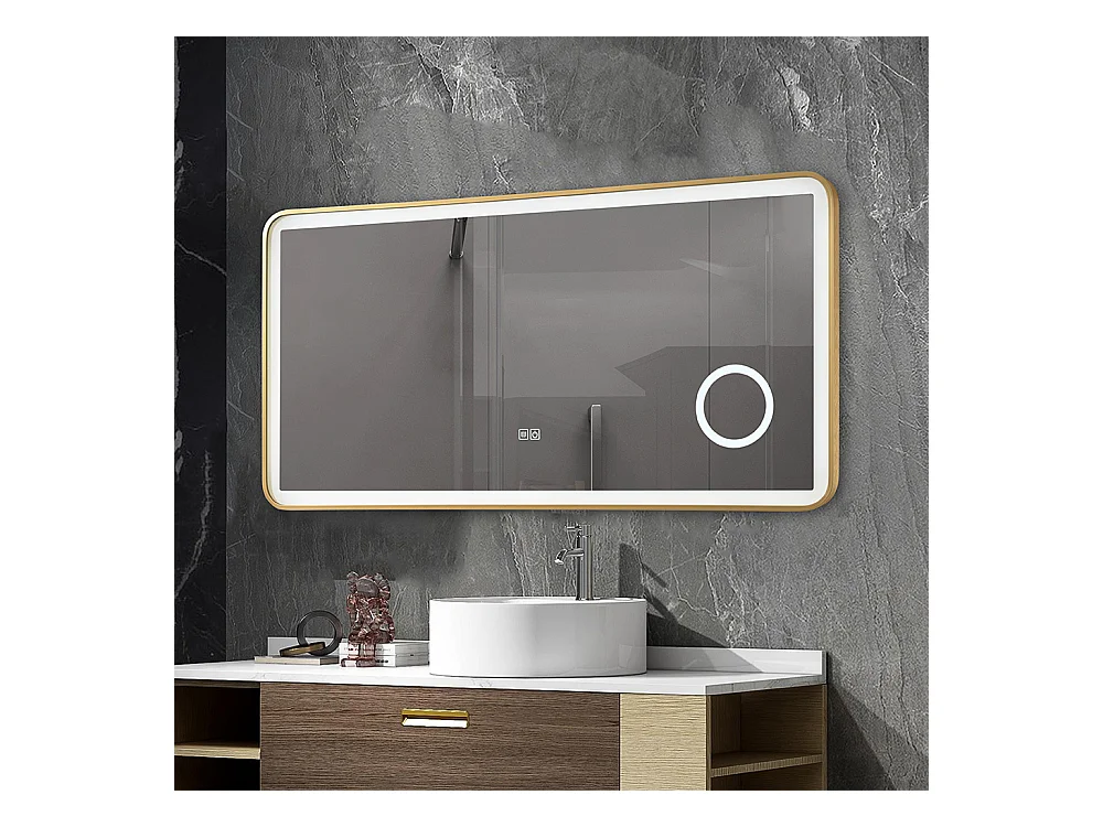 Miroir salle de bain LED 120x60cm anti buée avec cadre en aluminium doré et loupe x3 LB-4685G
