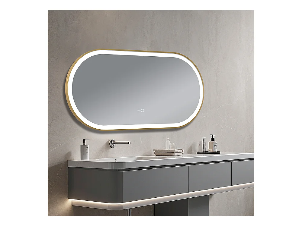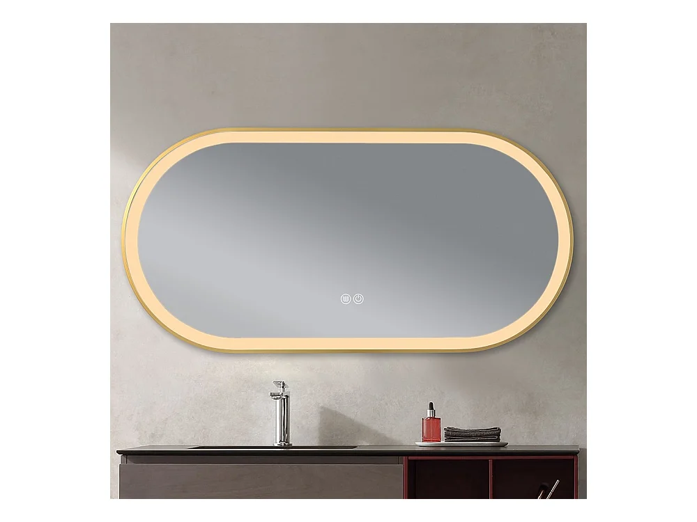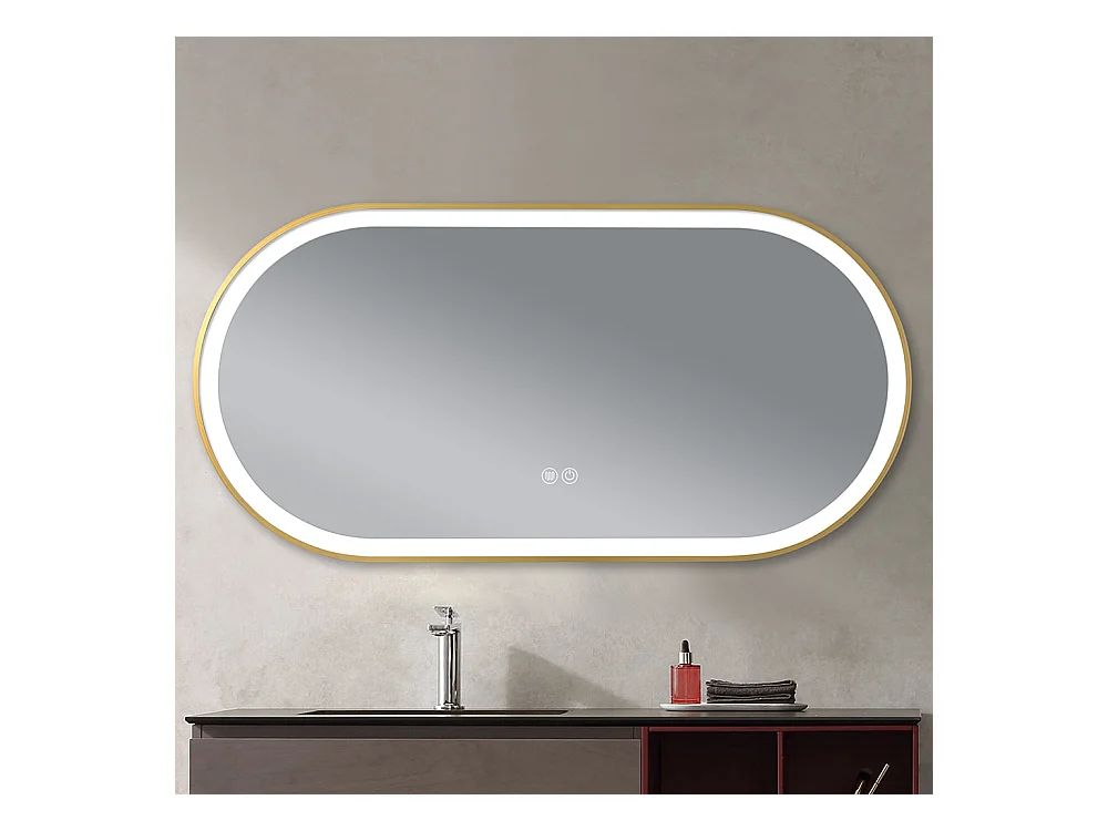 Miroir salle de bain LED ovale 110x60cm anti buée avec cadre en aluminium doré- LuxuryBain
