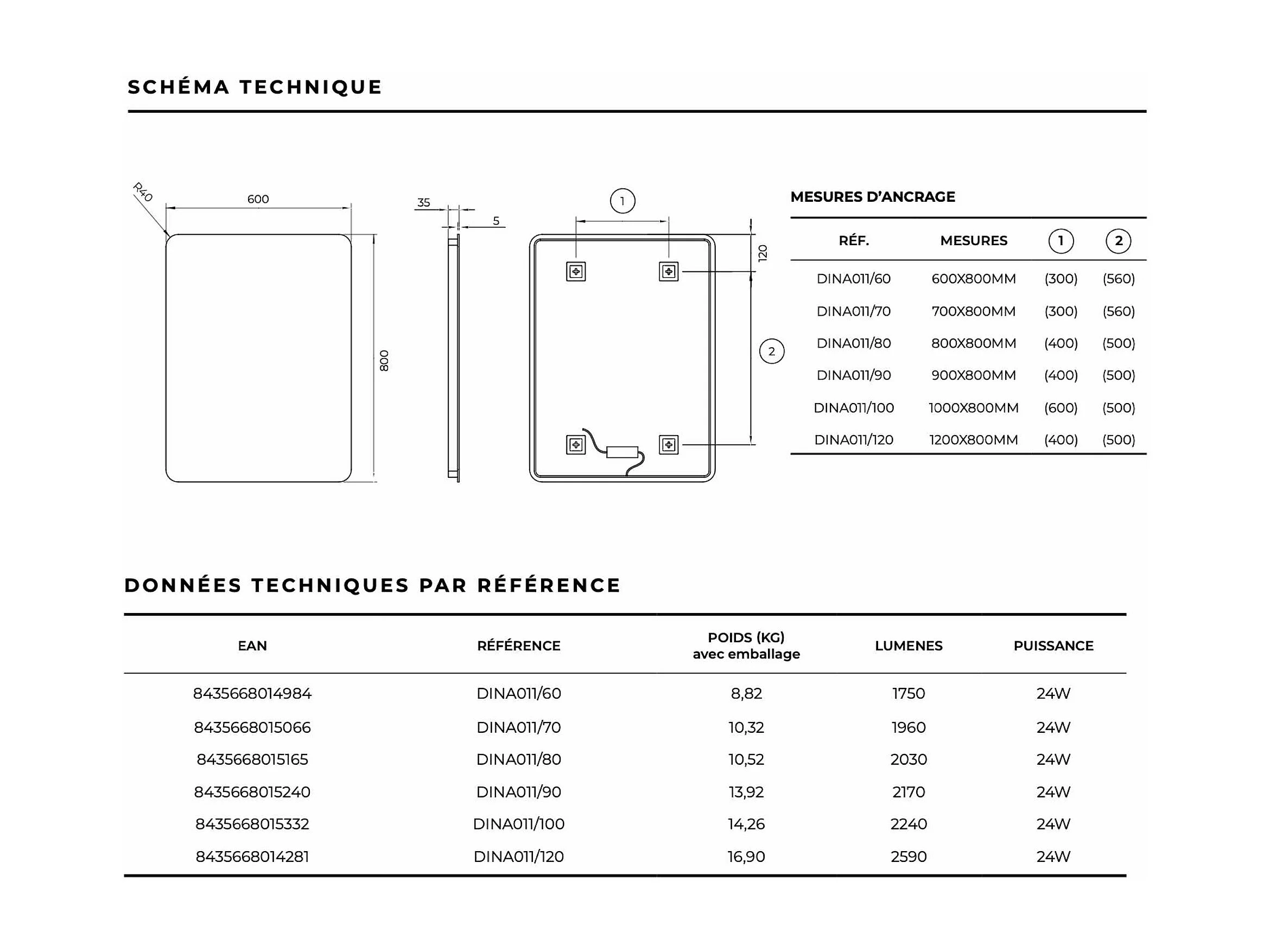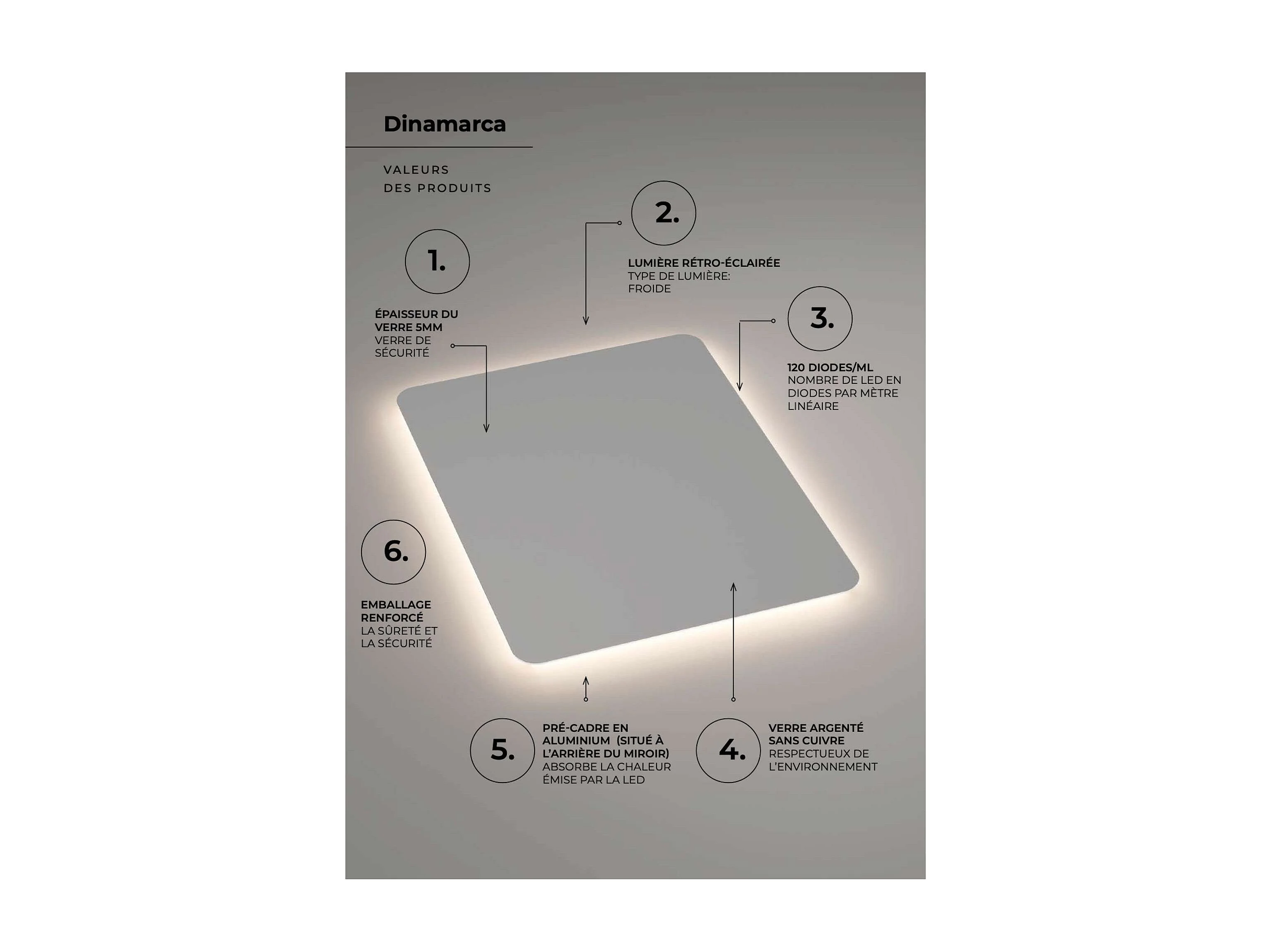 Miroir Salle de Bain DINAMARCA - 100x80cm - Led Rétro-éclairé (6500K) - LEDIMEX