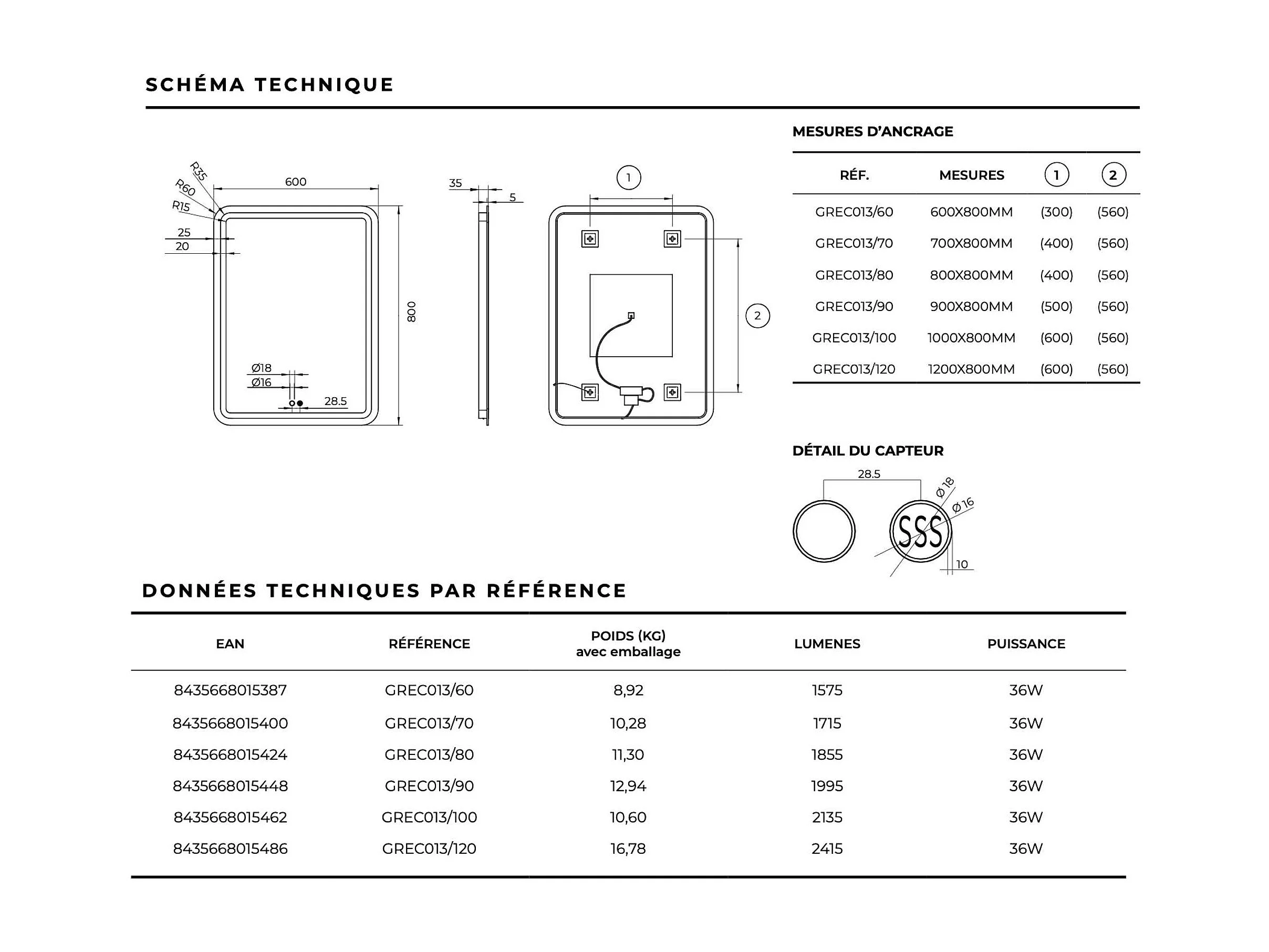 Miroir Salle de Bain GRECIA - 70x80cm - Led Rétro-éclairé & Diffusion Frontal - Tactiles On/Off & Anti-Buée - LEDIMEX