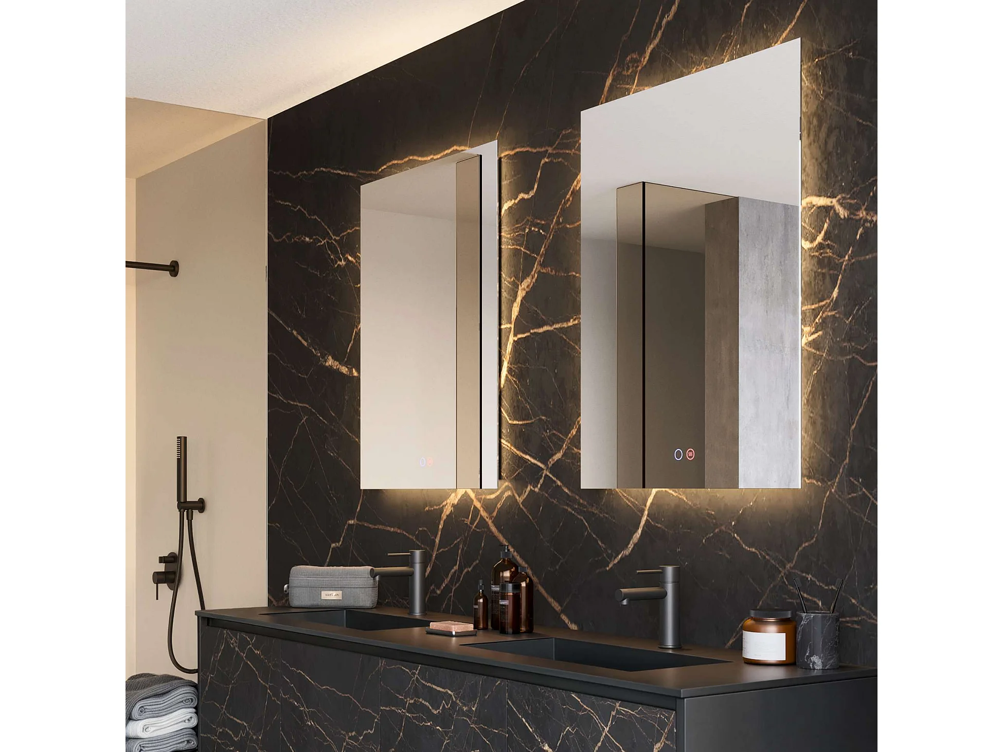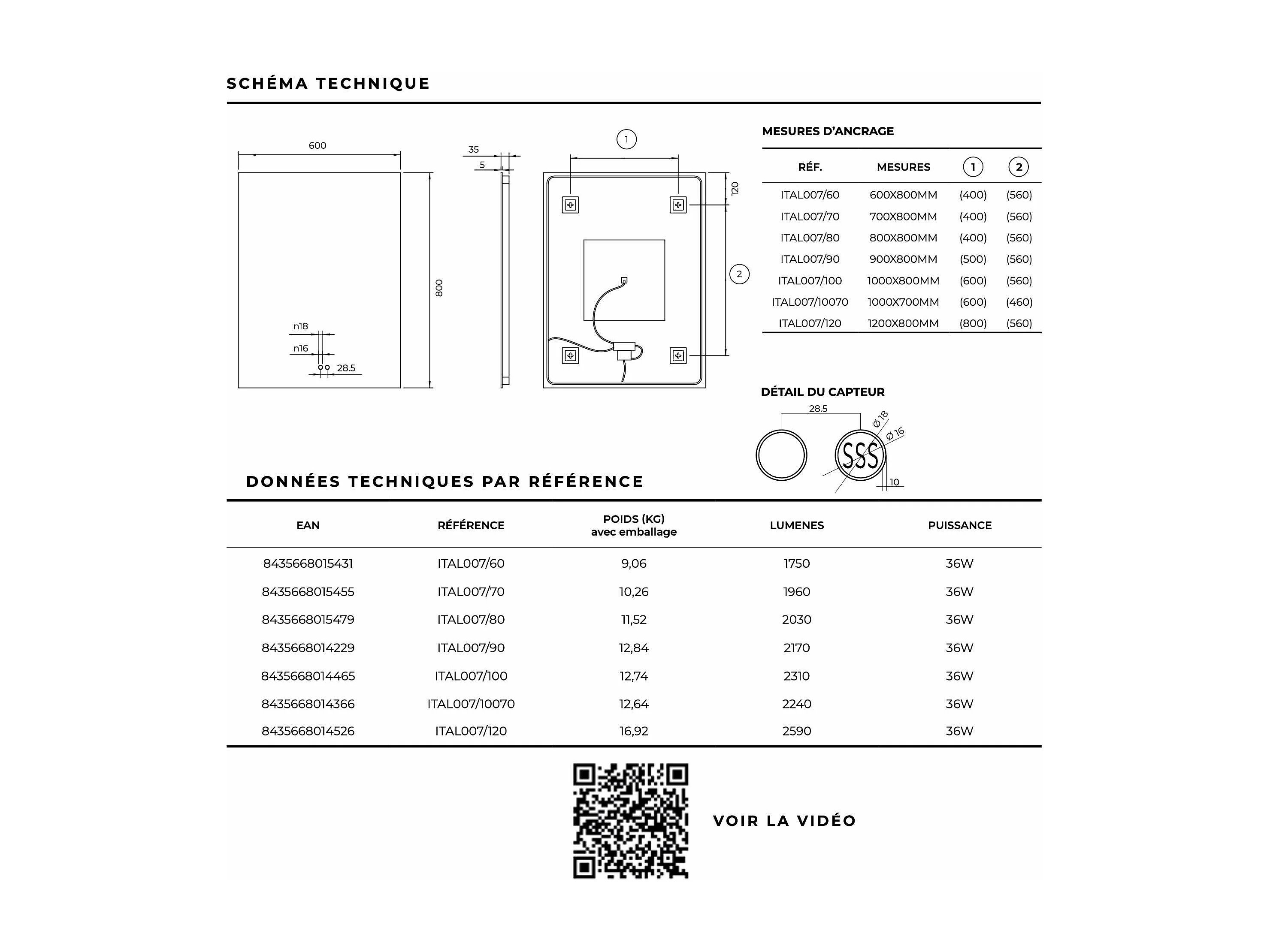 Miroir Salle de Bain ITALIA - 80x80cm - Led Rétro-éclairé (6500K) - Tactiles On/Off & Anti-Buée - LEDIMEX