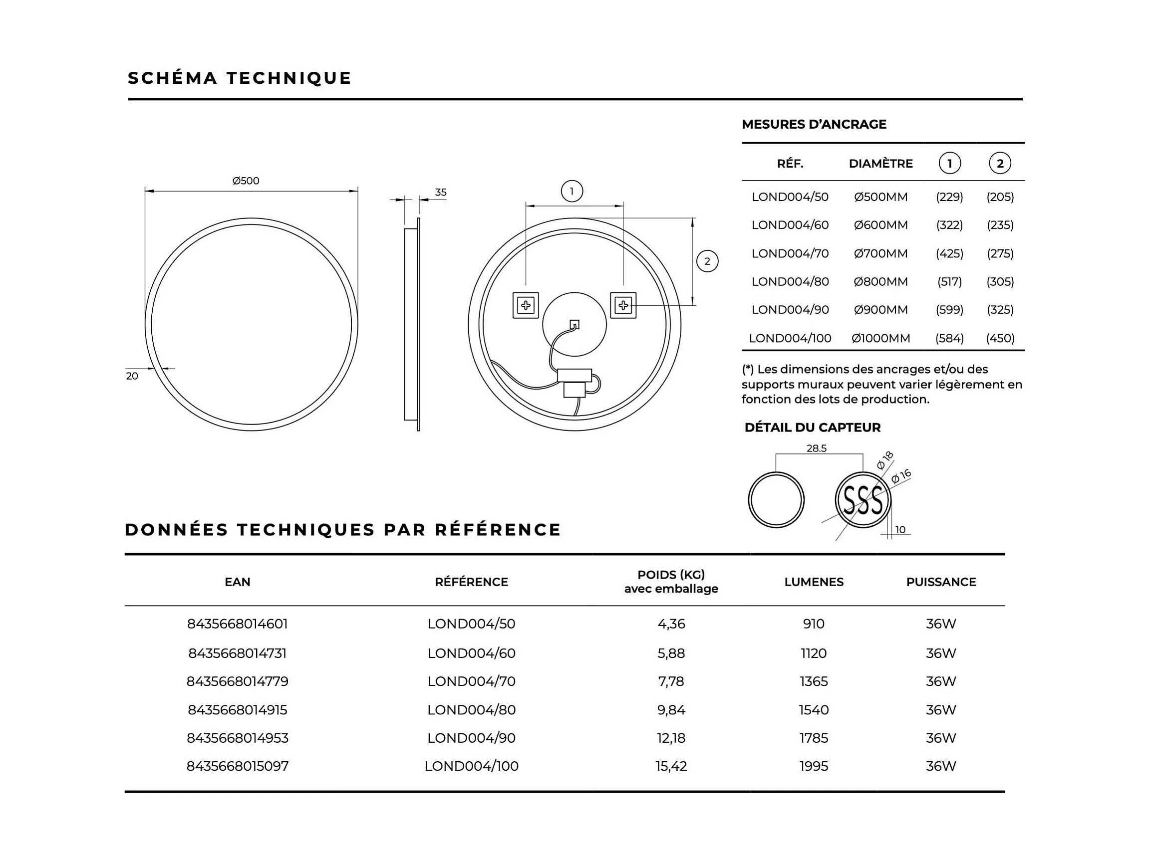 Miroir Salle de Bain LONDRES - Ø100 - Led Rétro-Éclairé (6500K) - Tactiles On/Off & Anti-Buée - LEDIMEX
