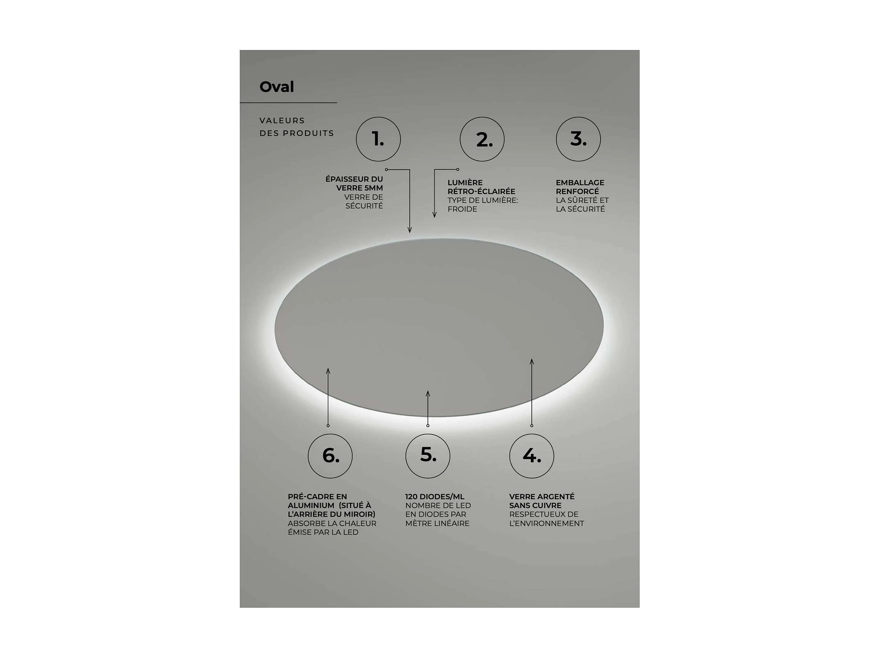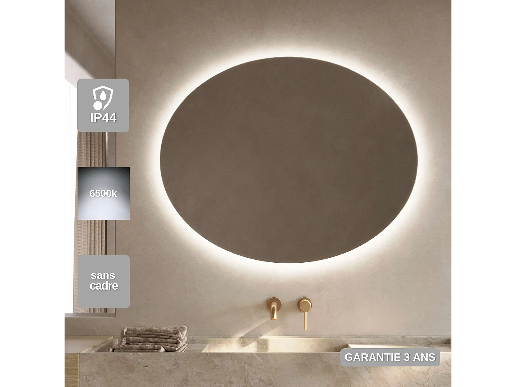 Miroir Salle de Bain OVAL - 100x80cm - Led Rétro-Éclairé (6500K) - Verre Sécurité 5mm - LEDIMEX