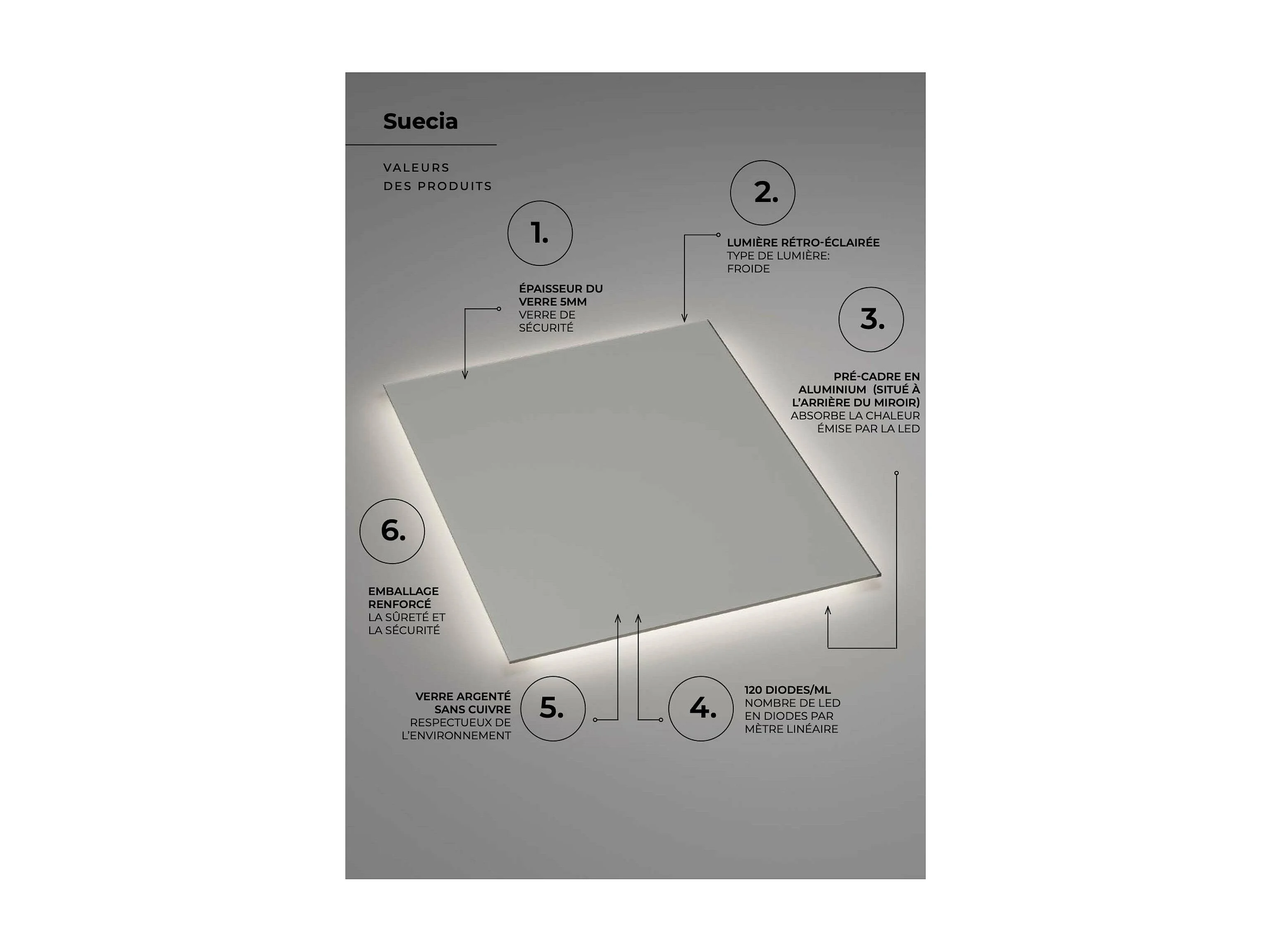 Miroir Salle de Bain SUECIA - 100x70cm - Led Rétro-Éclairé (6500K) - Verre Sécurité 5mm - LEDIMEX