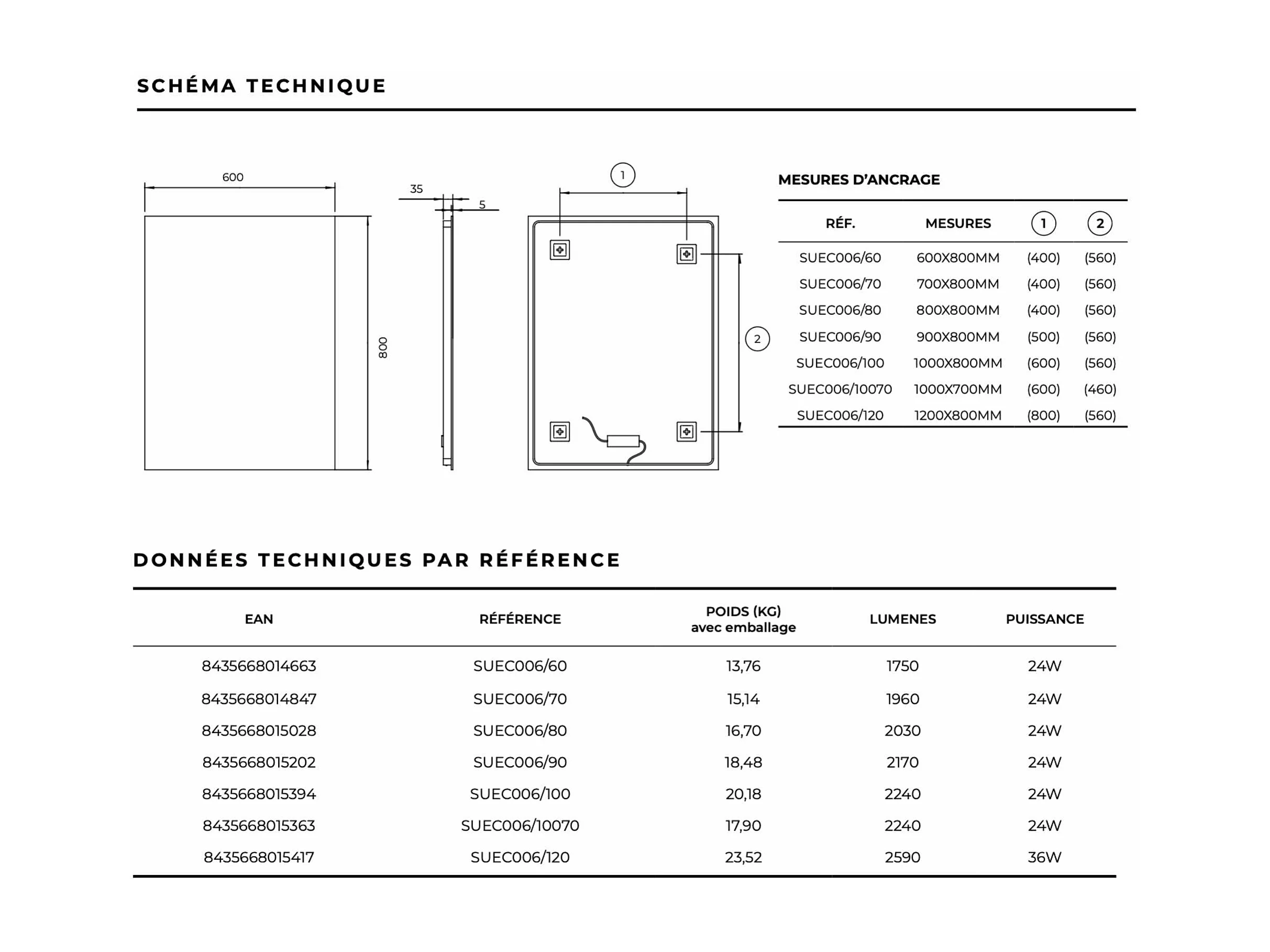 Miroir Salle de Bain SUECIA - 60x80cm - Led Rétro-Éclairé (6500K) - Verre Sécurité 5mm - LEDIMEX