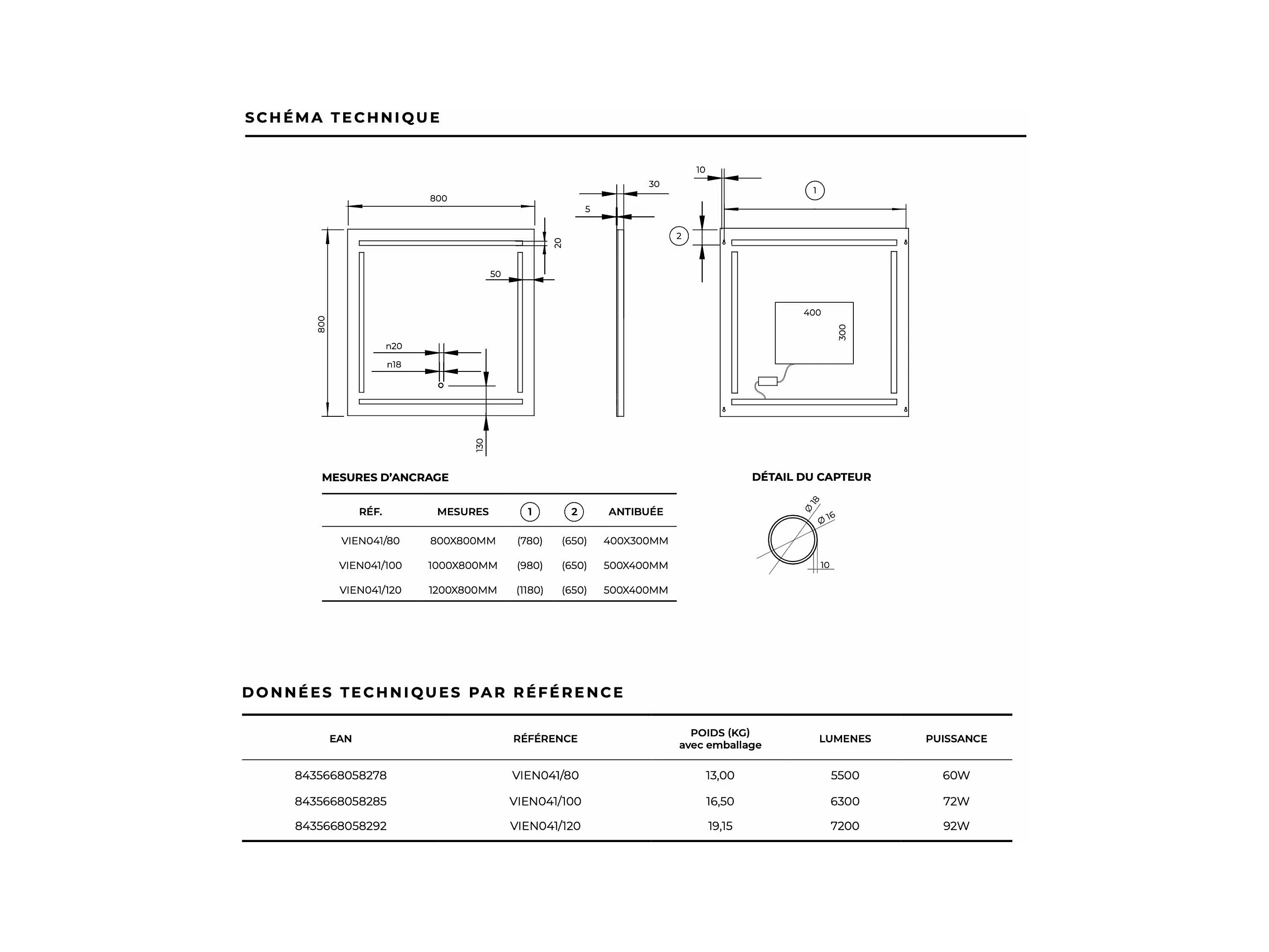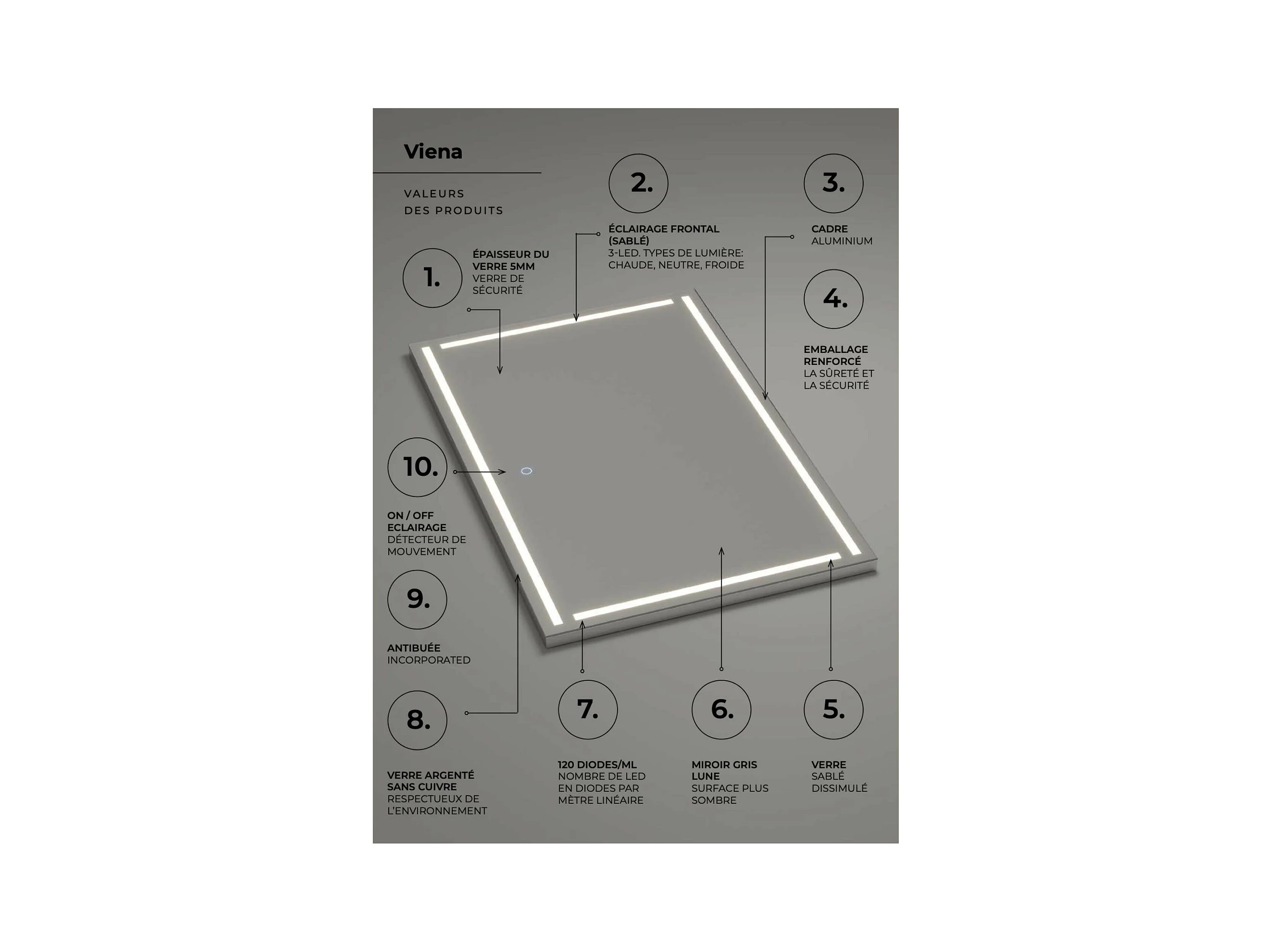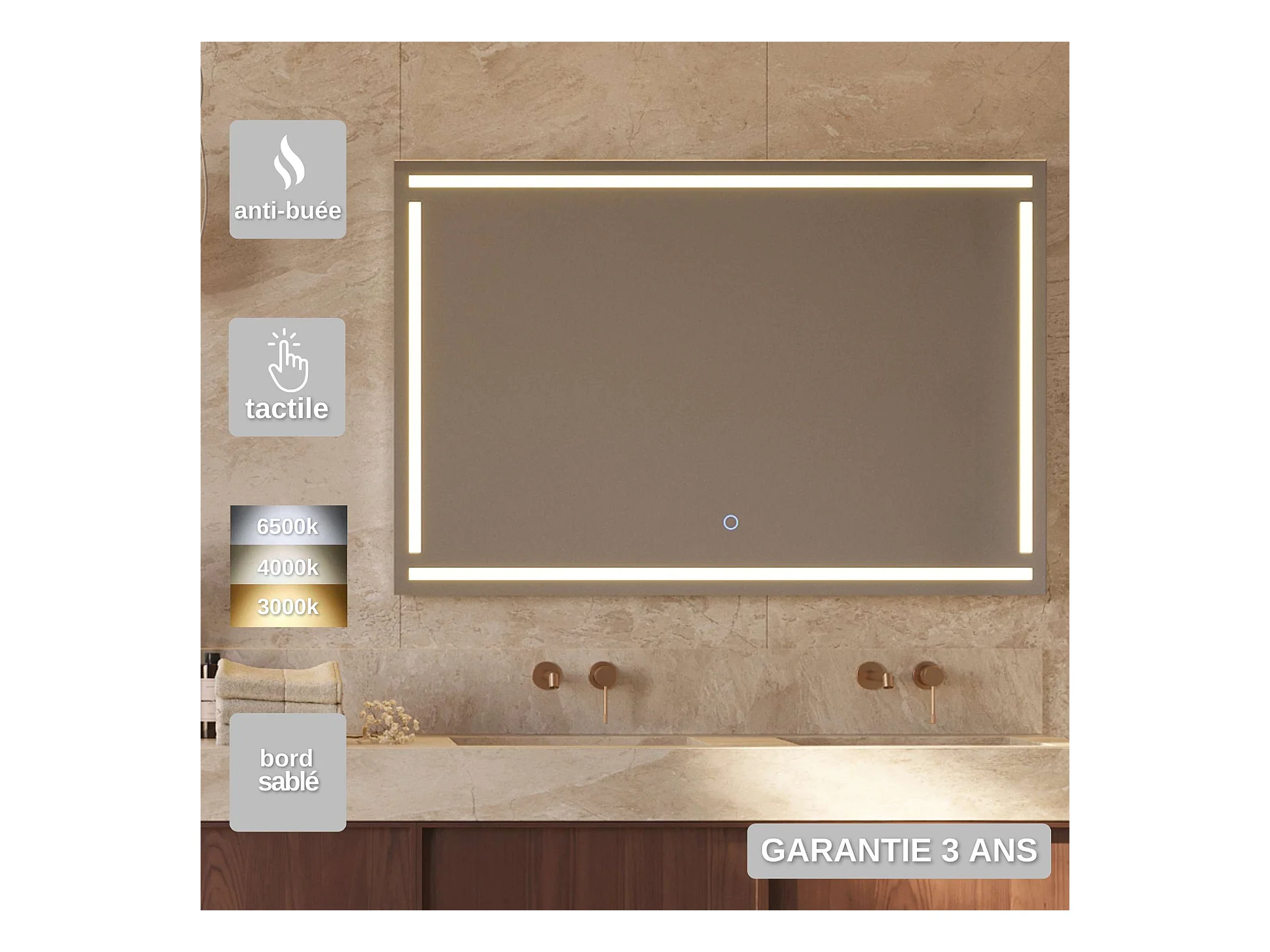 Miroir Salle de Bain VIENA - 120x80cm - Led Frontal T° Variable Frontal - Tactiles On/Off & Anti-Buée - LEDIMEX