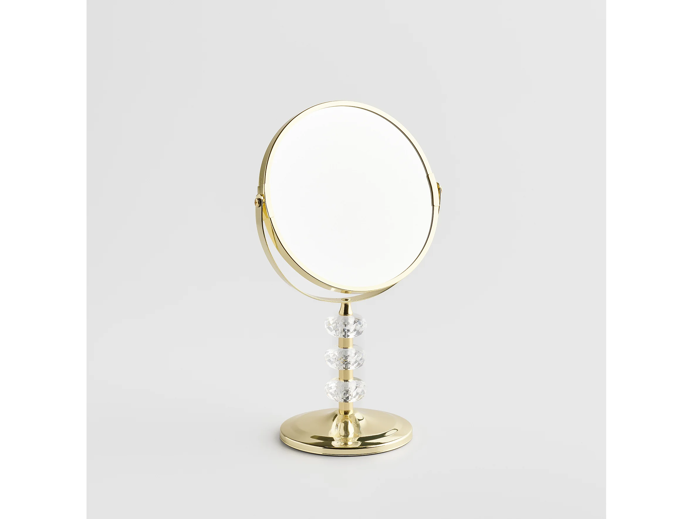 Petit miroir rond sur pied de canard doré 25x9,5x29,5cm