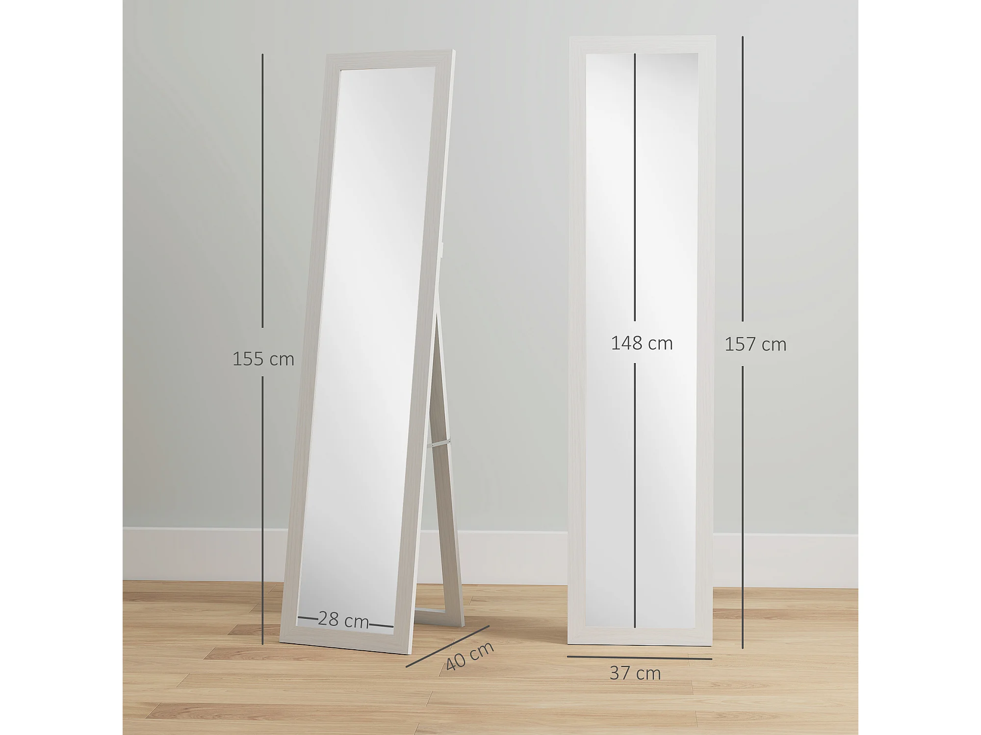 Miroir sur pied et mural rectangulaire dim. 37L x 40l x 157H cm aspect bois blanc