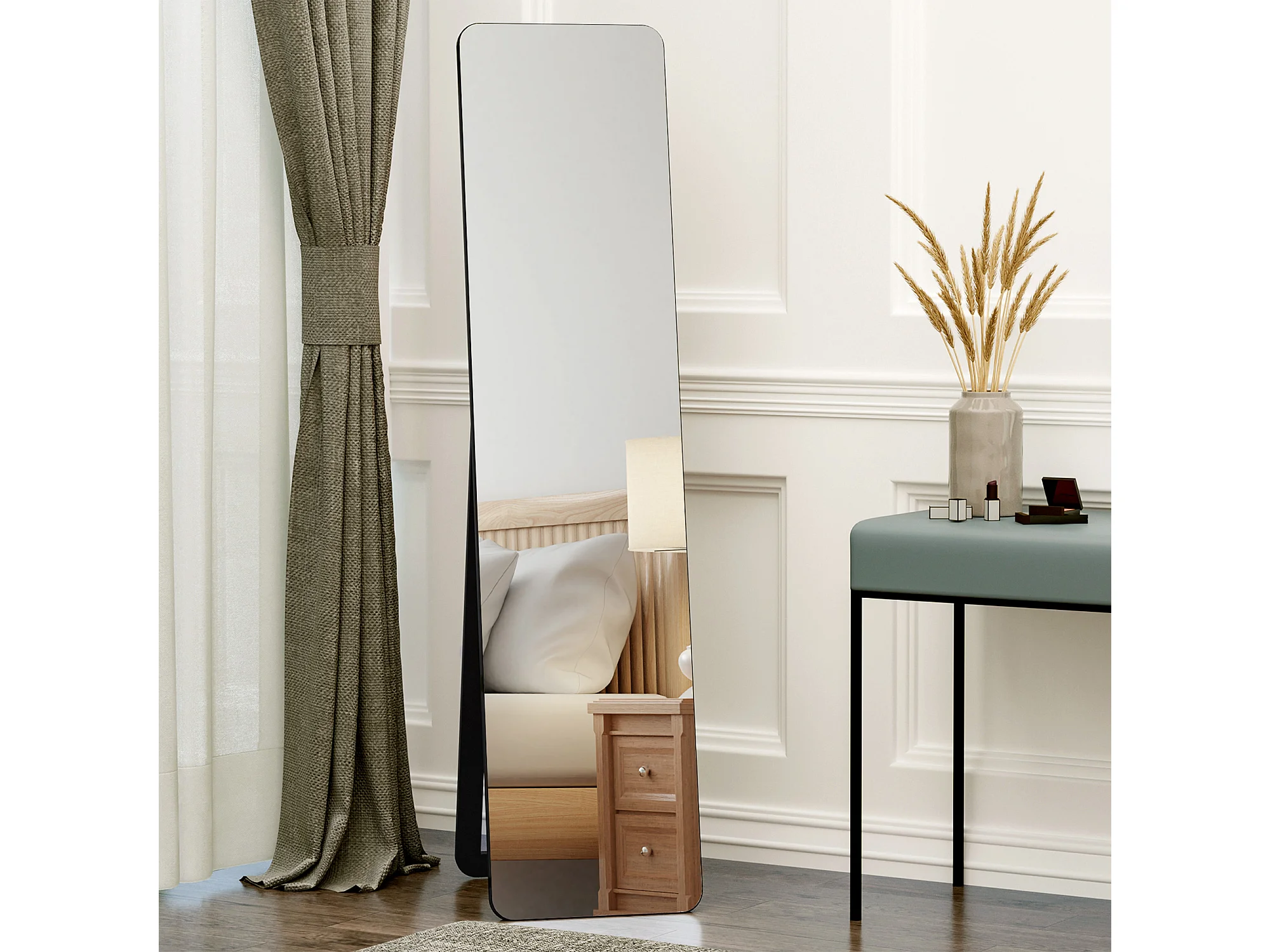 Miroir sur Pied Rectangle avec Cadre en Métal Miroir sur Pied HD Grand pour Salon, Chambre et Dressing Miroir Noir 165x60cm