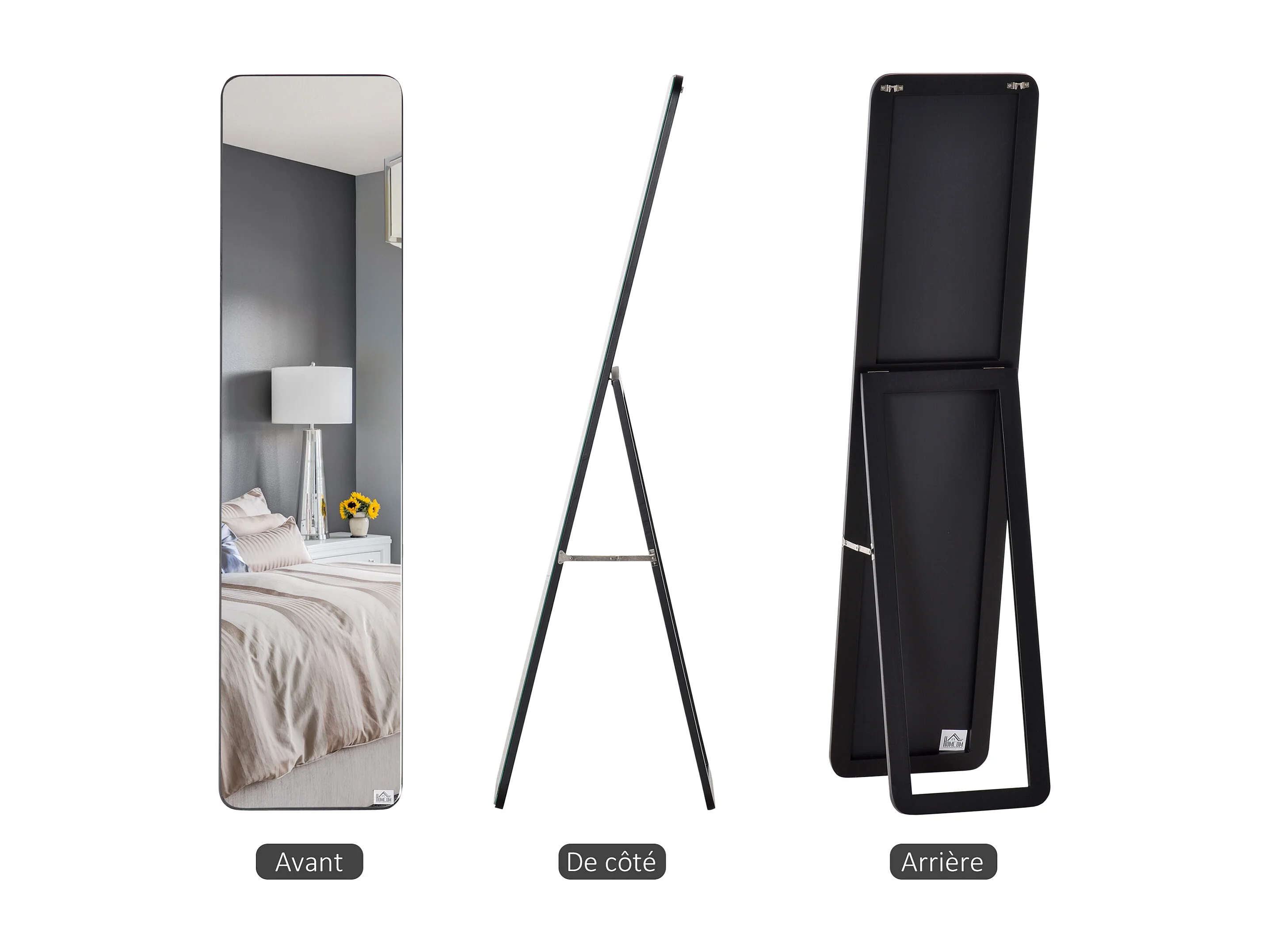 Miroir sur pied et mural rectangulaire dim. 37L x 48l x 152H cm noir