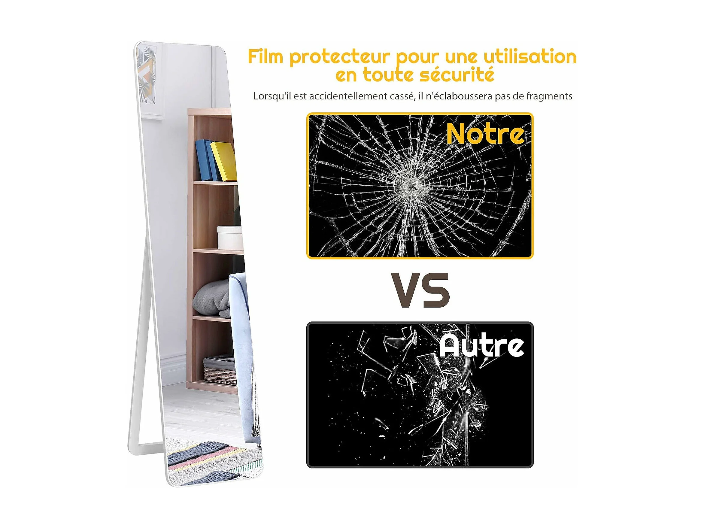 Miroir complet avec éclairage LED, verre incassable, blanc (40x5x160 cm)