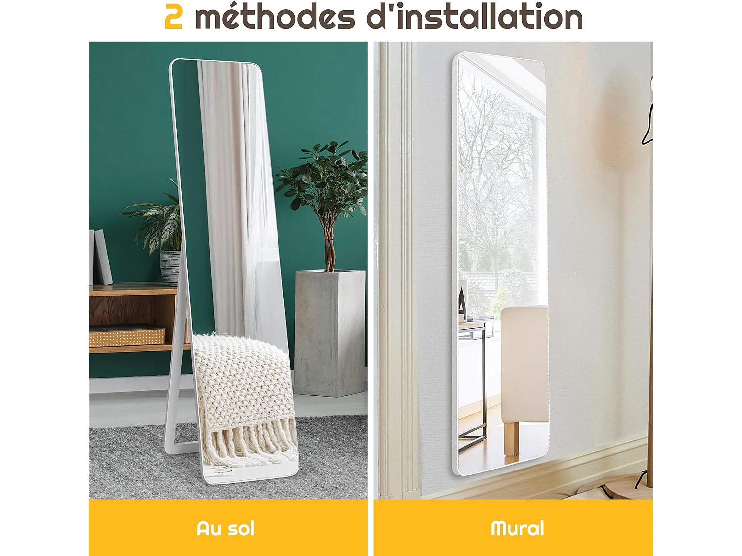 Miroir sur Pied Rectangulaire, Miroir Mural en Style Contemporain, Bord Rond, pour Chambre, Salon, Salle de Bain, 160 x 37cm, Blanc
