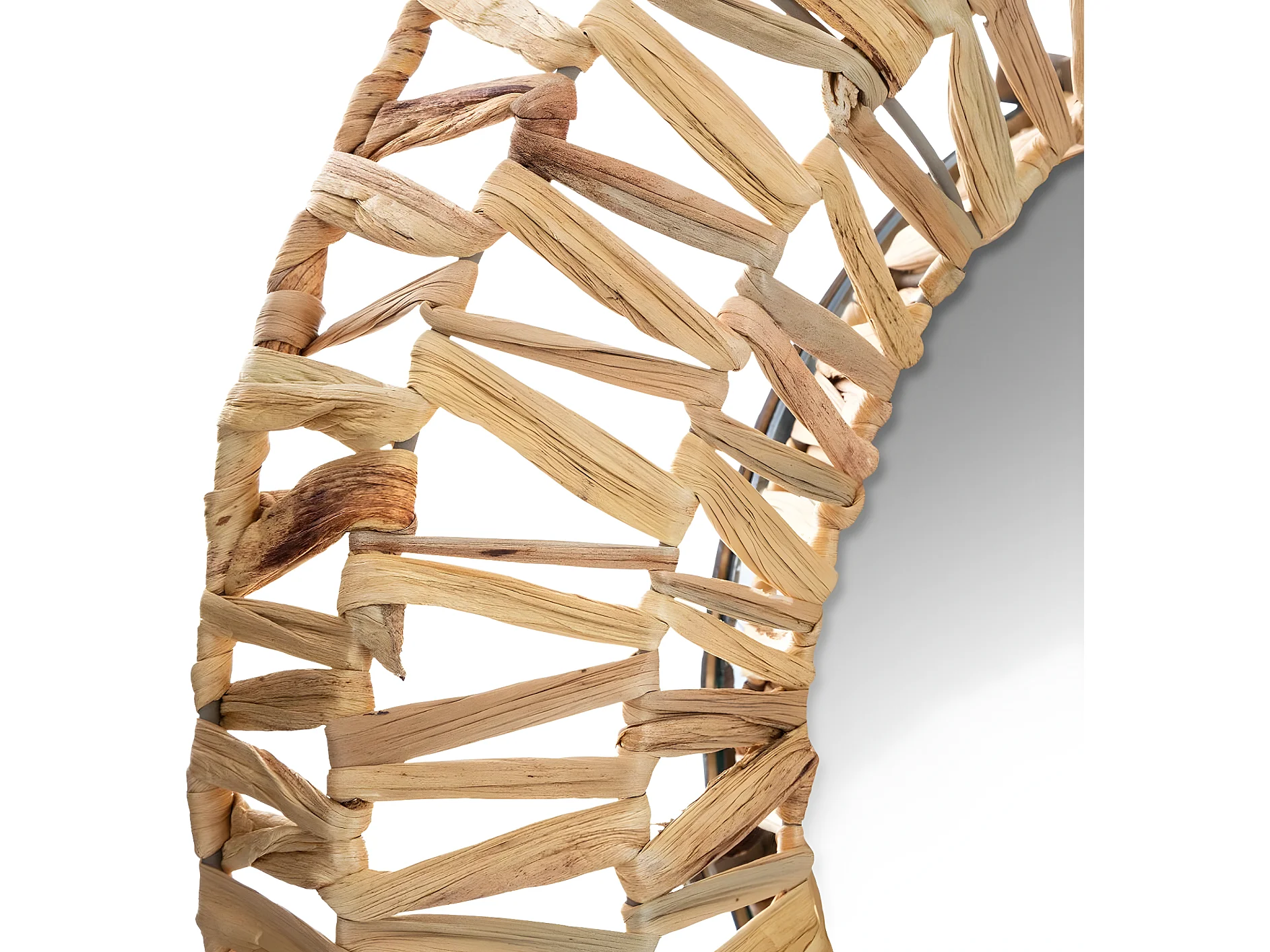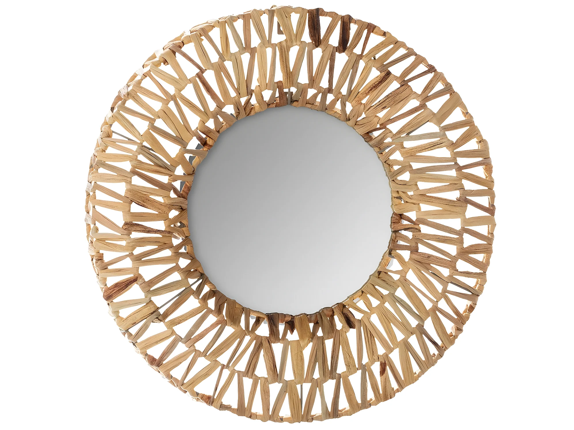 Miroir tressé en plantes séchées coloris beige moyen - Diamètre 45 cm