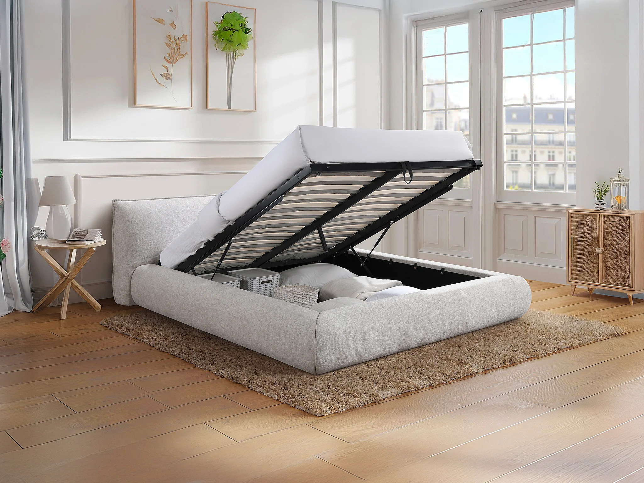 Lit coffre 160 x 200 cm - Tissu - Beige - MIRSIO